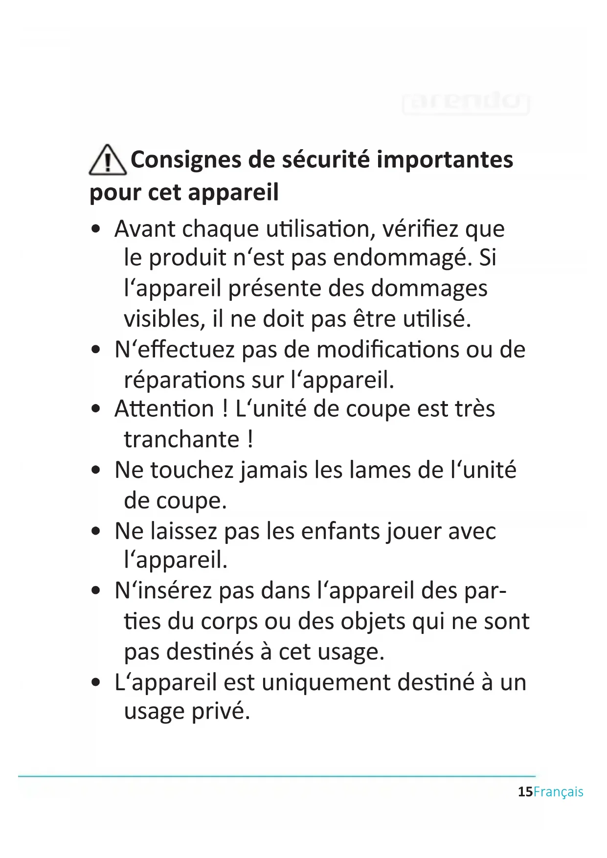 Retrouvez gratuitement la notice de l'appareil 307018 Arendo au format PDF.