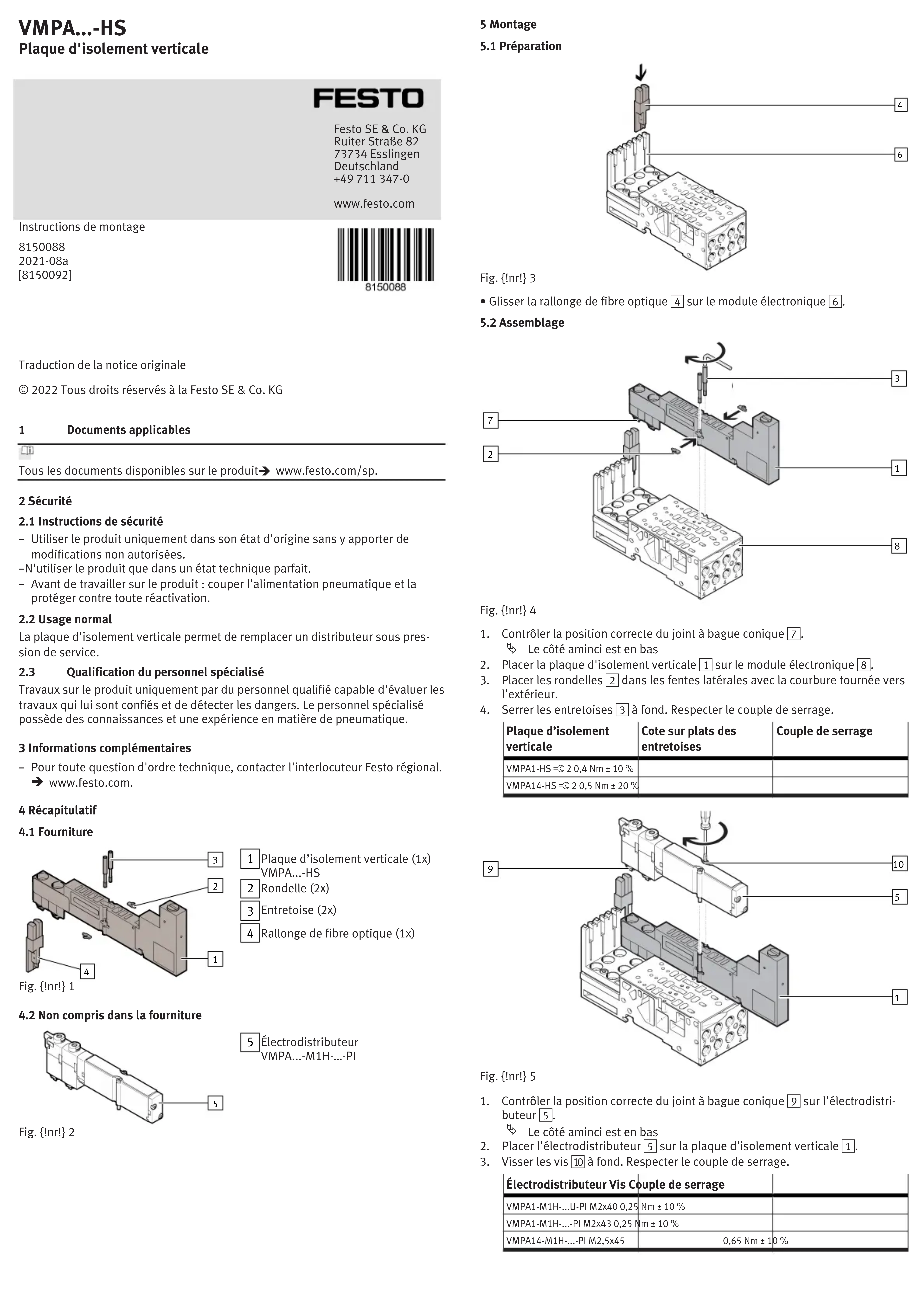 2021-08a [8150092] Traduction de la notice originale © 2022 Tous droits réservés à la Festo SE & Co. KG