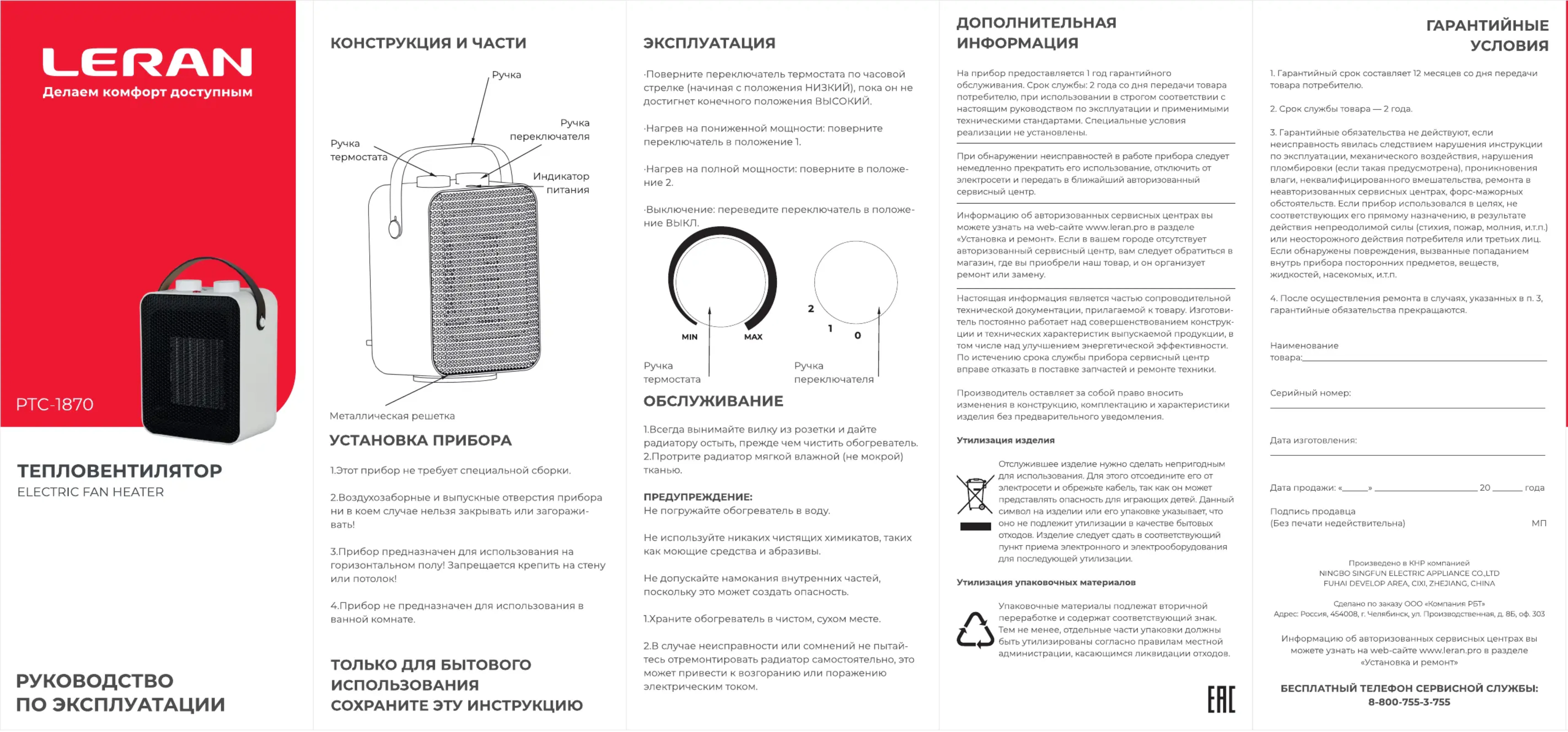 PTC 1870 - Chauffage LERAN - Notice d'utilisation et mode d'emploi gratuit