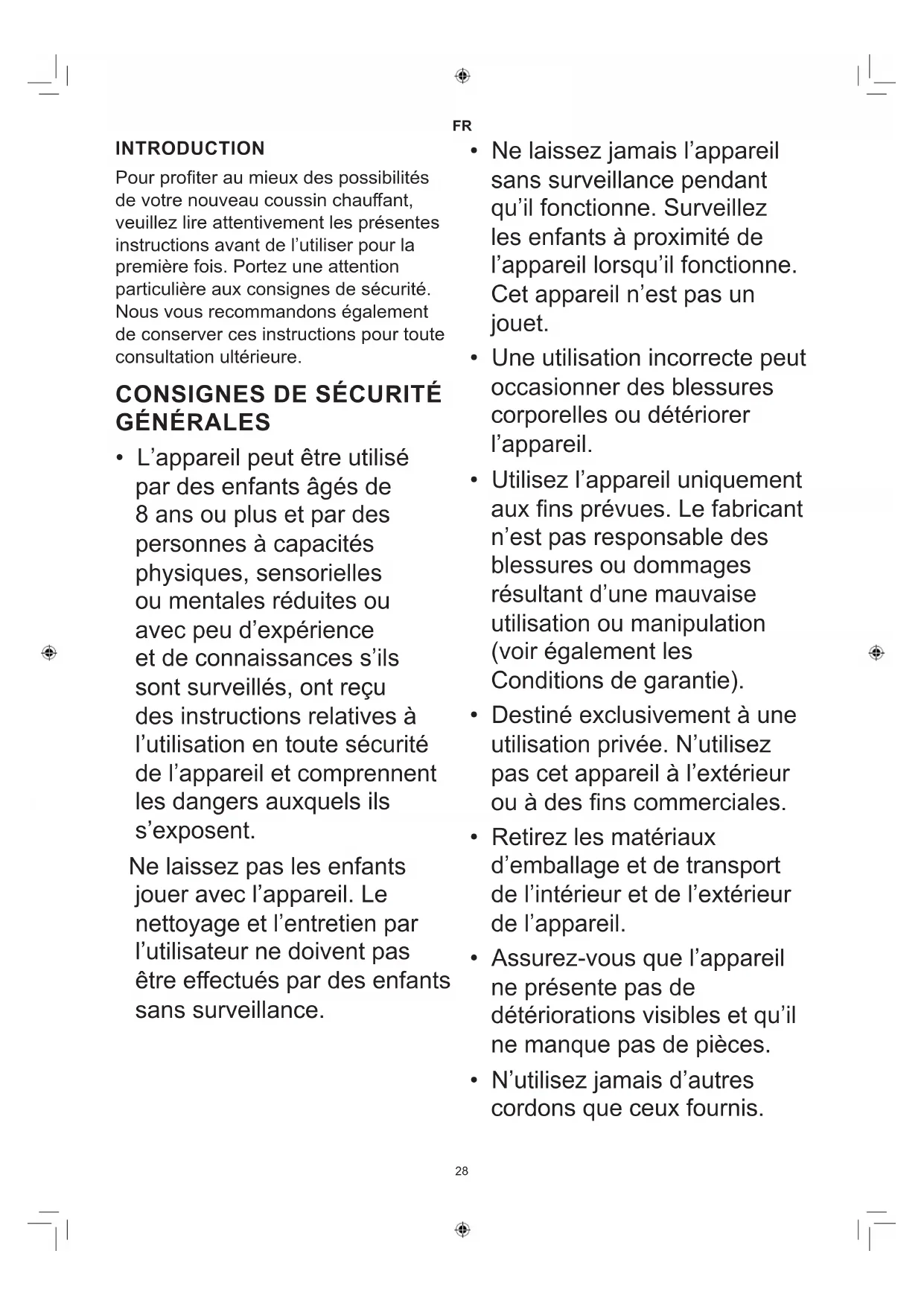 INTRODUCTION Pourproteraumieuxdespossibilités devotrenouveaucoussinchauant, veuillez lire attentivement les présentes instructions avant de l’utiliser pour la première fois. Portez une attention particulière aux consignes de sécurité. Nous vous recommandons également de conserver ces instructions pour toute consultation ultérieure.