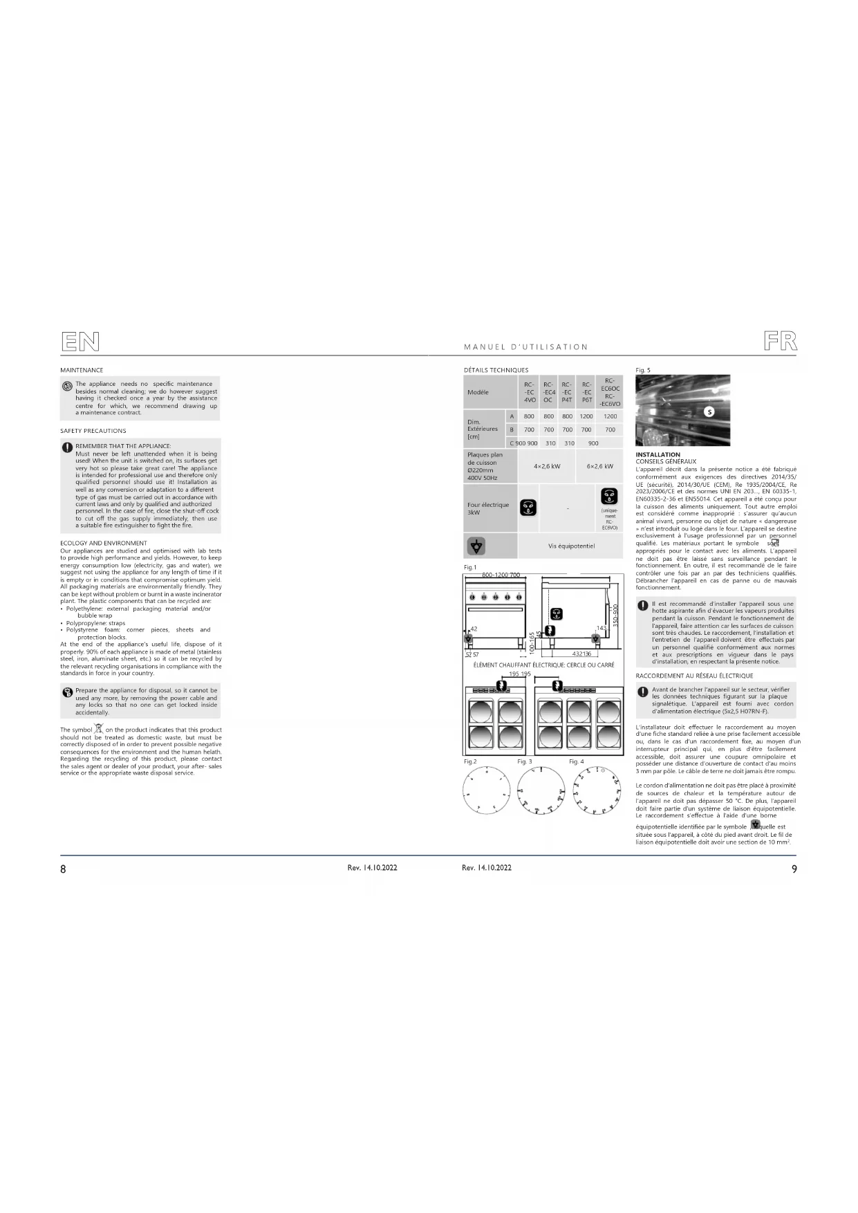 Lors de la première mise en marche, le four dégage de mauvaises odeurs dues aux substances telles que les graisses, les huiles et les résines appliquées lors de la fabrication. Lors de la première utilisation, il est nécessaire de faire fonctionner l’appareil à vide à la température maximale pendant au moins 1 heure. Après cette opération, le four est prêt à l’emploi. Nettoyer le four après chaque utilisation. Rev. 14.10.2022Rev. 14.10.2022ELEMENTO DI RISCALDAMENTO ELETTRICO: CERCHIO O QUADRATO 800-1200 700