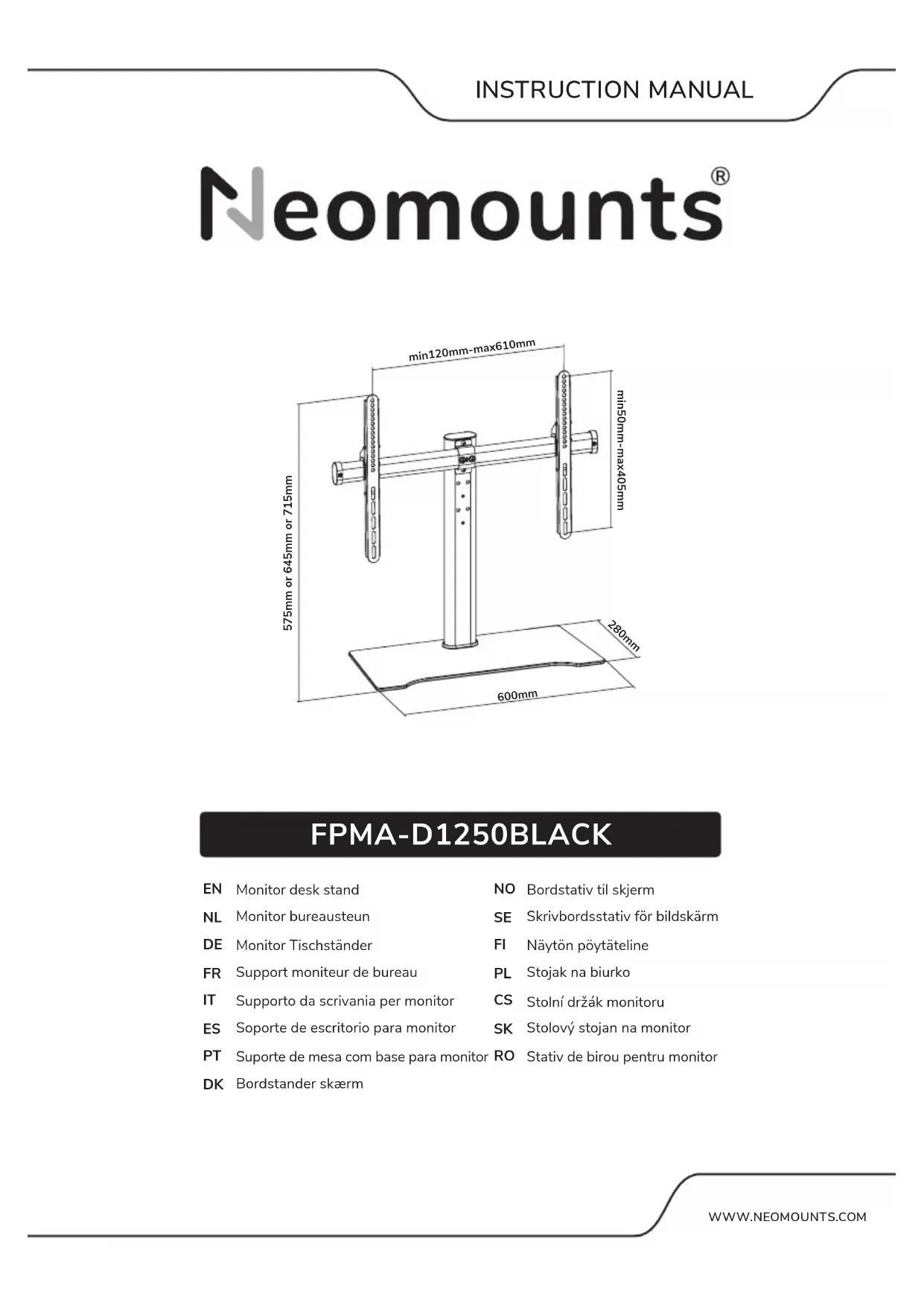Retrouvez gratuitement la notice de l'appareil FPMAD1250BLACK NeoMounts au format PDF.