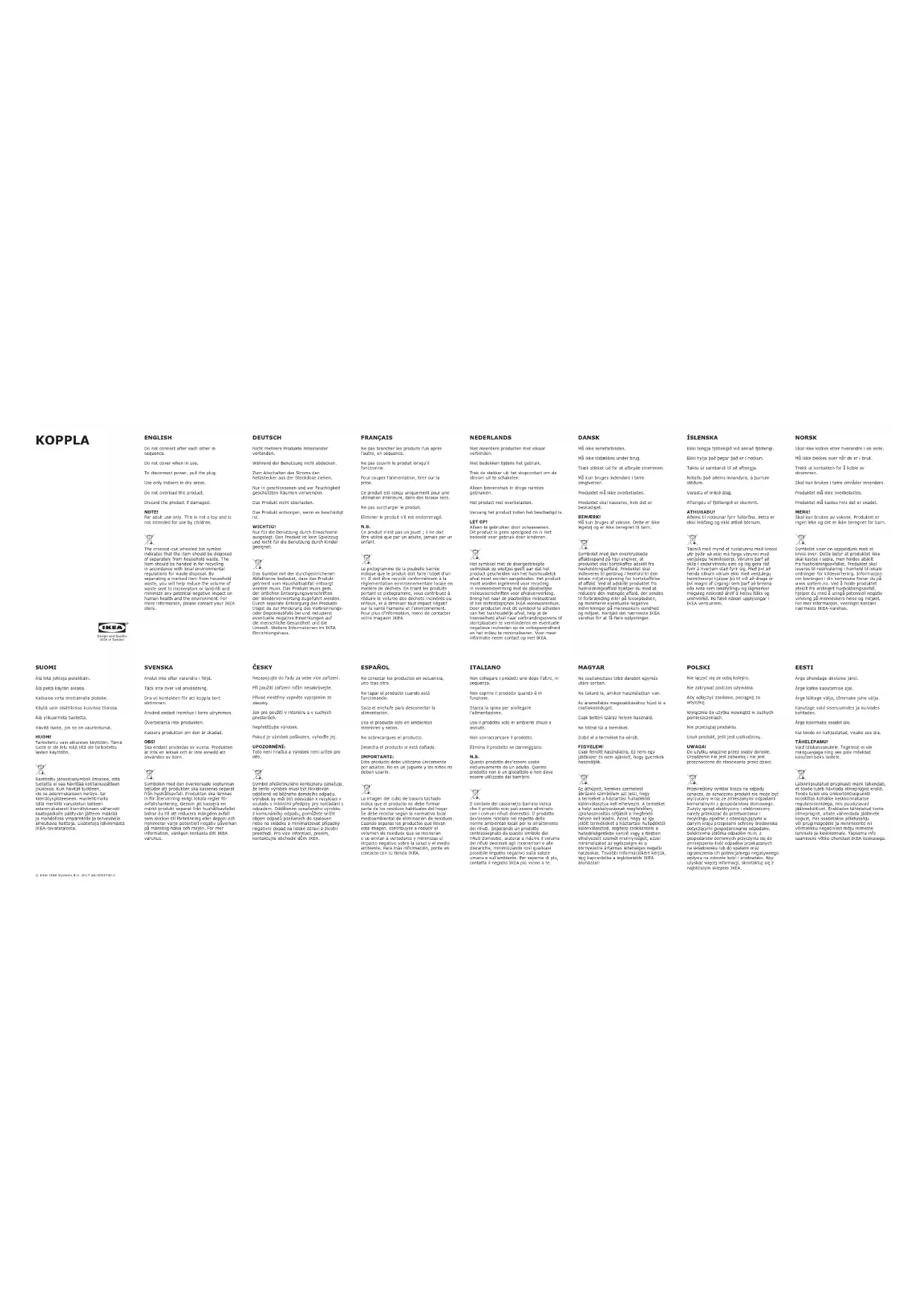 Retrouvez gratuitement la notice de l'appareil KOPPLA 004.120.15 IKEA au format PDF.