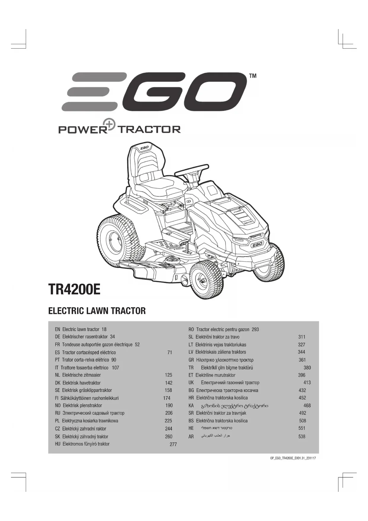 Rendez-vous sur le site web egopowerplus.eu pour consulter l’intégralité des conditions de la politique de garantie EGO.71TRACTOR CORTACÉSPED ELÉCTRICO — TR4200E