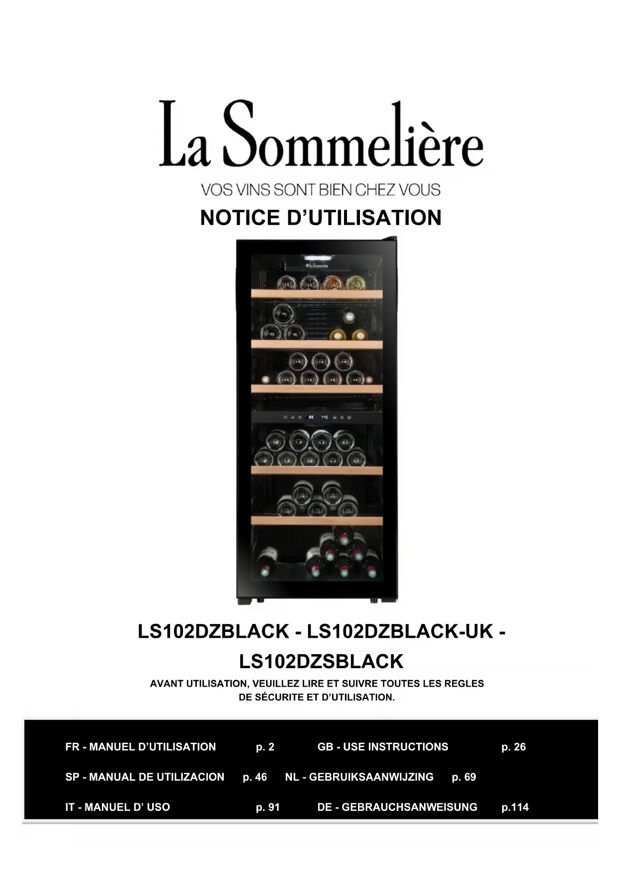 LS102DZBLACK - Cave à vin LA SOMMELIERE - Notice d'utilisation et mode d'emploi gratuit