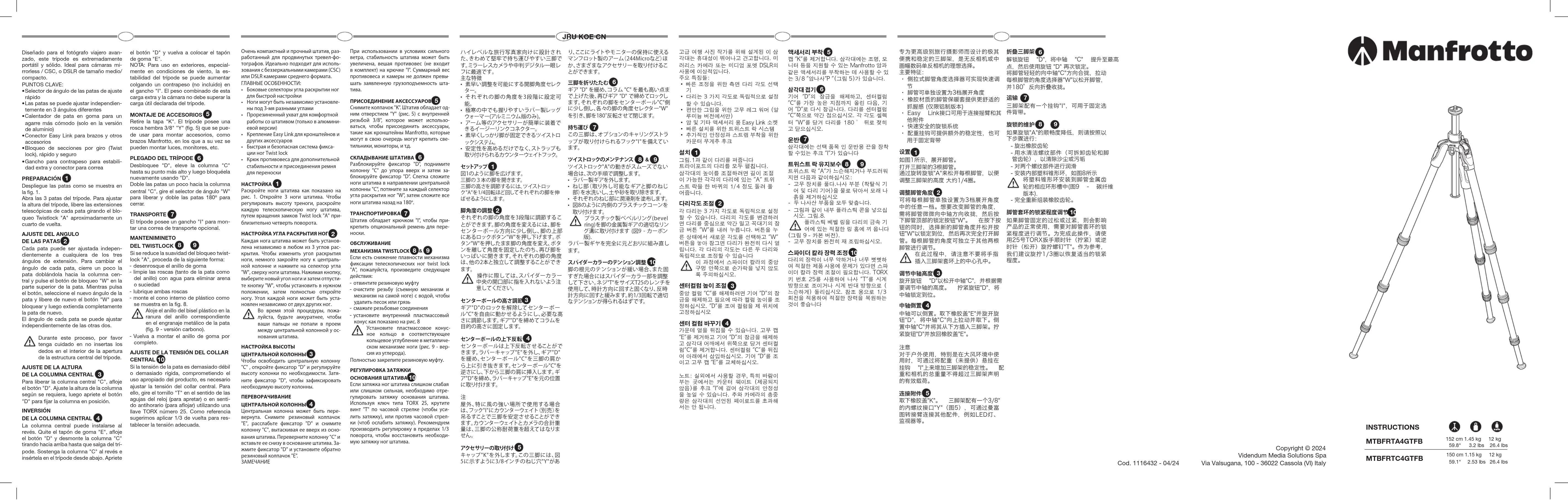 Retrouvez gratuitement la notice de l'appareil Befree GT PRO MKBFRTC4GTFB3W MANFROTTO au format PDF.
