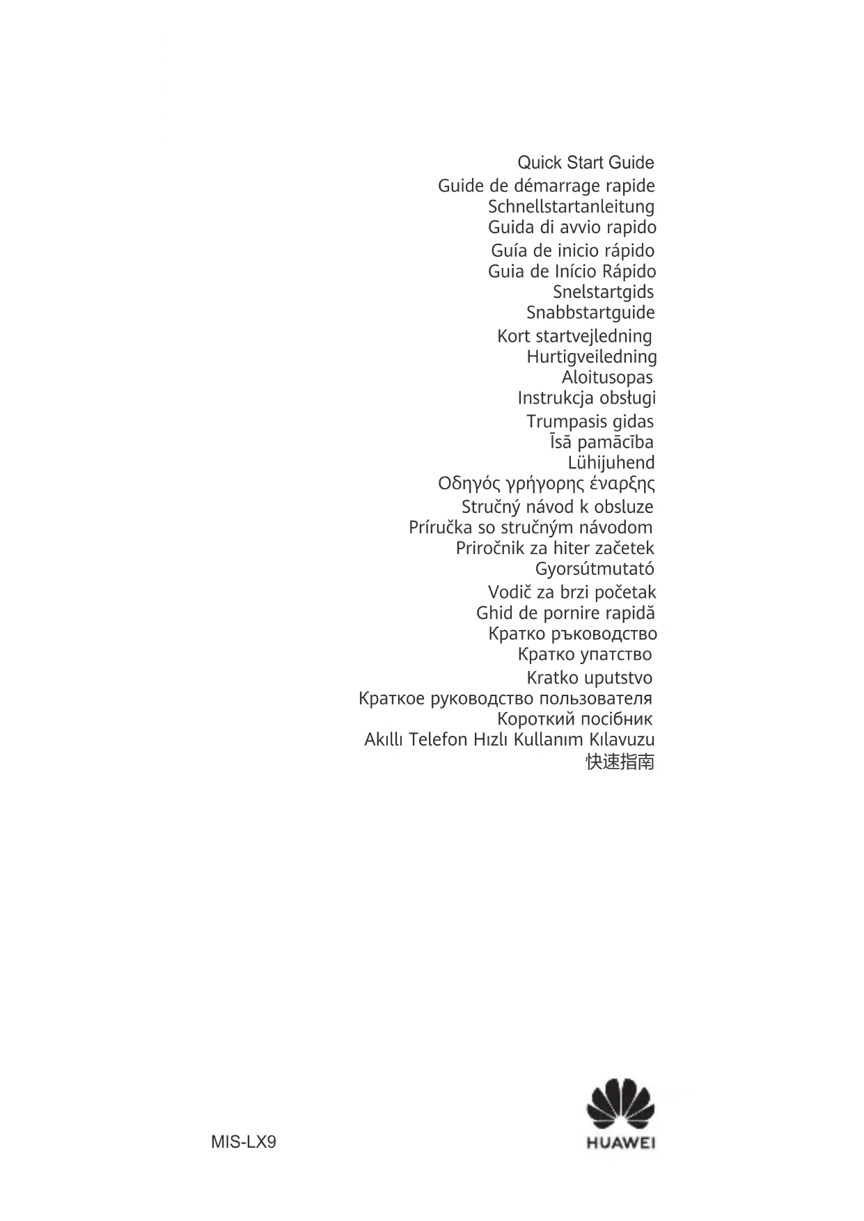 - Cet appareil prend en charge la charge rapide USB PD. La puissance diusée par le chargeur doit être comprise entre min. 5 Watts requis par l'équipement radio, et max. 100 Watts an d'atteindre la vitesse de charge maximale. Informations relatives à l'élimination et au recyclage Le symbole sur le produit, la batterie, la documentation ou l'emballage indique que les produits et les batteries arrivés en n de vie doivent être placés dans des points de collecte de déchets distincts désignés à cet eet par les autorités locales. De la sorte, les déchets EEE seront recyclés et traités de manière à préserver des matériaux précieux et à protéger la santé humaine et l'environnement. Pour en savoir plus sur les lieux de collecte et la manière de mettre au rebut vos déchets électriques et électroniques, contactez les autorités locales, votre détaillant ou le service des 4ordures ménagères, ou rendez-vous sur le site https://consumer.huawei.com/en/. Informations sur l'exposition aux RF L'Organisation mondiale de la Santé a indiqué qu'il est possible de réduire l'exposition en limitant votre utilisation ou en utilisant simplement un kit mains libres pour éloigner l'appareil de la tête et du corps. Assurez-vous que les accessoires de l'appareil, tels que le boîtier ou l'étui, ne soient pas composés d'éléments métalliques. Tenez l'appareil éloigné du corps pour respecter les exigences de distance. L'appareil est conforme aux spécications RF s'il est utilisé à proximité de votre oreille ou à une distance de 0,50 cm du corps. Le débit d'absorption spécique (DAS) local quantie l'exposition de l'utilisateur aux ondes électromagnétiques de l'équipement concerné. Le DAS maximal autorisé est de 2,0 W/kg pour la tête et le tronc et de 4,0 W/kg pour les membres. Valeur du débit d'absorption spécique (DAS) la plus élevée déclarée pour cet appareil : DAS tête : 0,92 W/kg; DAS tronc : 1,28 W/kg; DAS membres : 2,79 W/kg. Conformité réglementaire UE Par la présente, Huawei Device Co., Ltd. déclare que cet appareil MIS-LX9 est conforme à la directive suivante : RED 2014/53/UE, RoHS 2011/65/UE, ErP 2009/125/CE. Le texte intégral de la déclaration de conformité UE, les informations détaillées ErP et les informations les plus récentes sur les accessoires et logiciels sont disponibles à l'adresse Internet suivante : https://consumer.huawei.com/certication