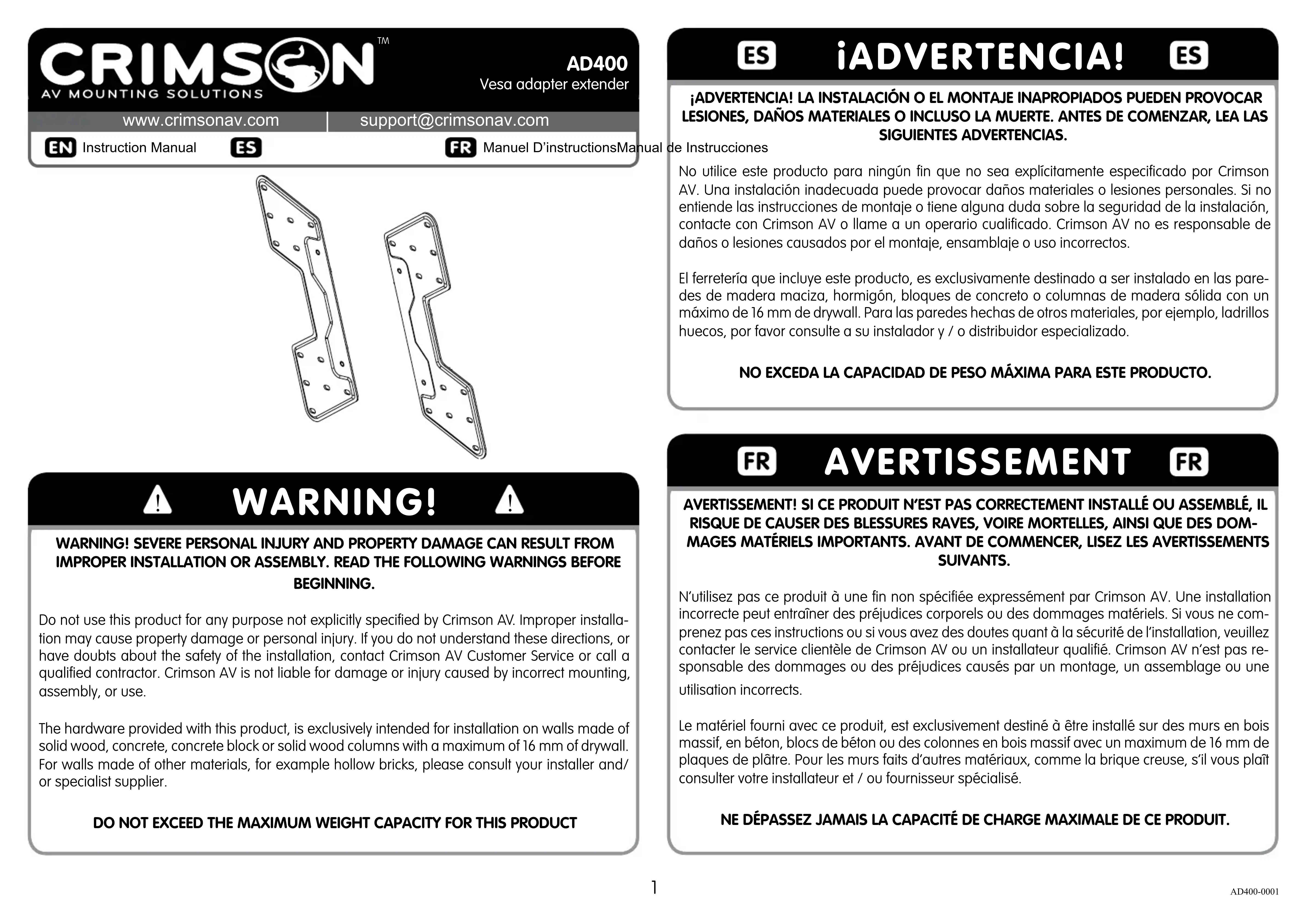 AD400 - Support mural pour écran Crimson - Notice d'utilisation et mode d'emploi gratuit
