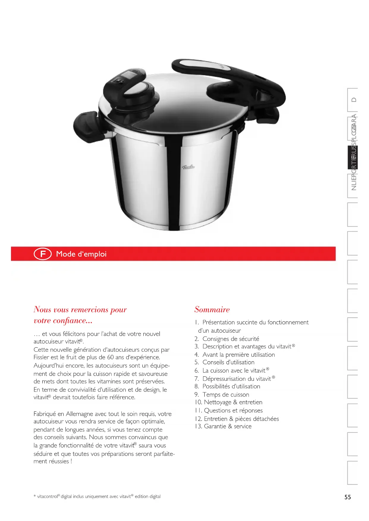 MODE D'EMPLOI Vitavit Edition Design Fissler