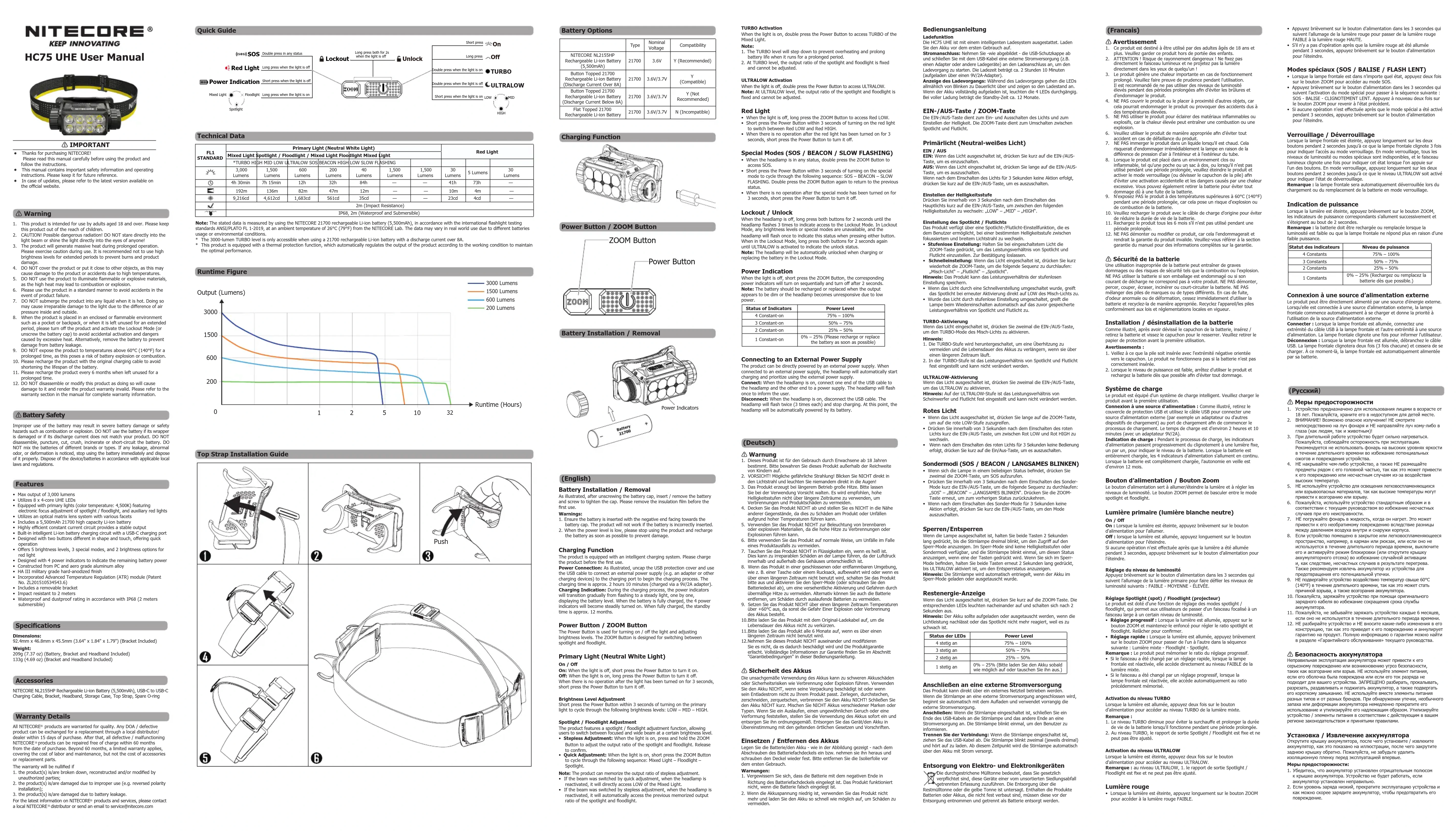 Retrouvez gratuitement la notice de l'appareil HC75 UHE Nitecore au format PDF.