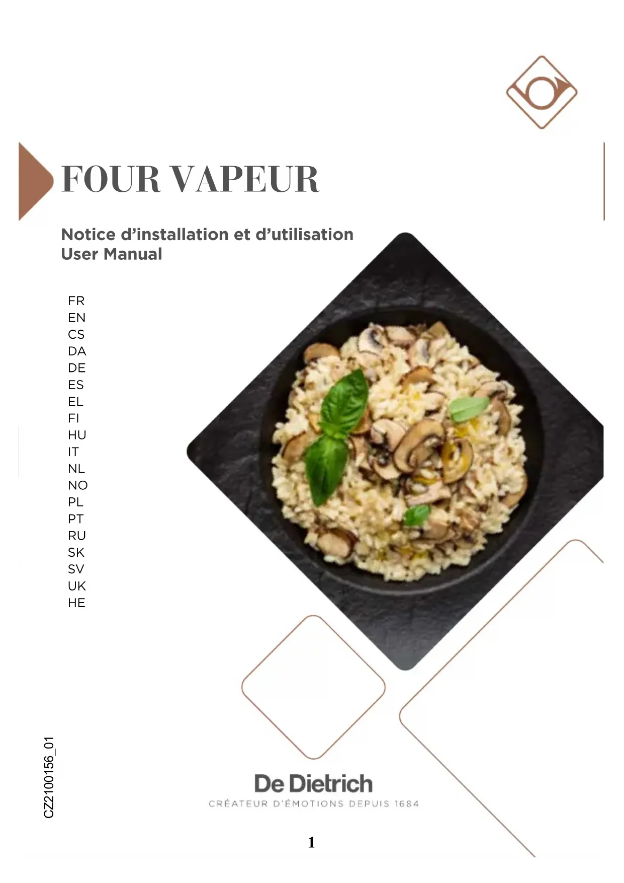 - HEFR CHÈRE CLIENTE, CHER CLIENT Vous venez d’acquérir un produit De Dietrich. Ce choix révèle votre exigence autant que votre goût pour l’art de vivre à la française. Héritières de plus de 300 ans de savoir-faire, les créations De Dietrich incarnent la fusion du design, de l’authenticité et de la technologie au service de l’art culinaire. Nos appareils sont fabriqués avec des matériaux nobles et offrent une qualité de nition irréprochable. Nous sommes certains que cette confection de haute facture permettra aux amoureux de la cuisine d’exprimer tous leurs talents. Le Service Consommateurs De Dietrich est à votre écoute pour répondre à toutes vos questions et suggestions pour toujours mieux satisfaire vos exigences. Nous sommes honorés d’être votre nouveau partenaire en cuisine et vous remercions de votre conance. Avec ses manufactures en France, à Orléans et Vendôme, De Dietrich cultive une quête constante d’excellence, perpétuant un savoir-faire d’exception dans la conception de produits parfaitement nis. Nombre de nos électroménagers sont certiés par le label Origine France Garantie, une reconnaissance qui atteste de leur fabrication en France. Ce label assure non seulement la qualité et la durabilité de nos appareils, mais il garantit également leur traçabilité, offrant une indication claire et objective de leur provenance. www.de-dietrich.comSÉCURITÉ ET PRÉCAUTION IMPORTANTE p. 4