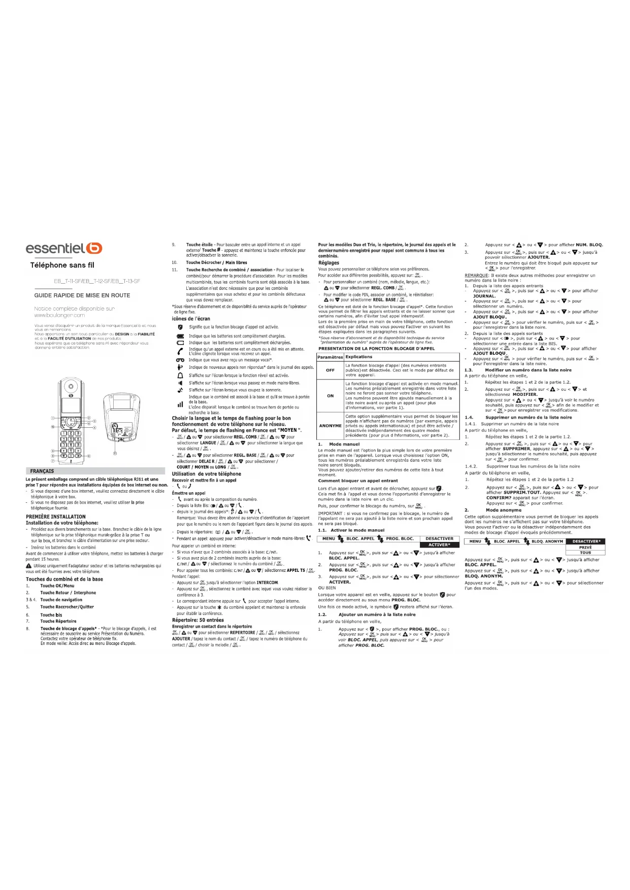 EB_T11SF - Téléphone ESSENTIEL B - Notice d'utilisation et mode d'emploi gratuit