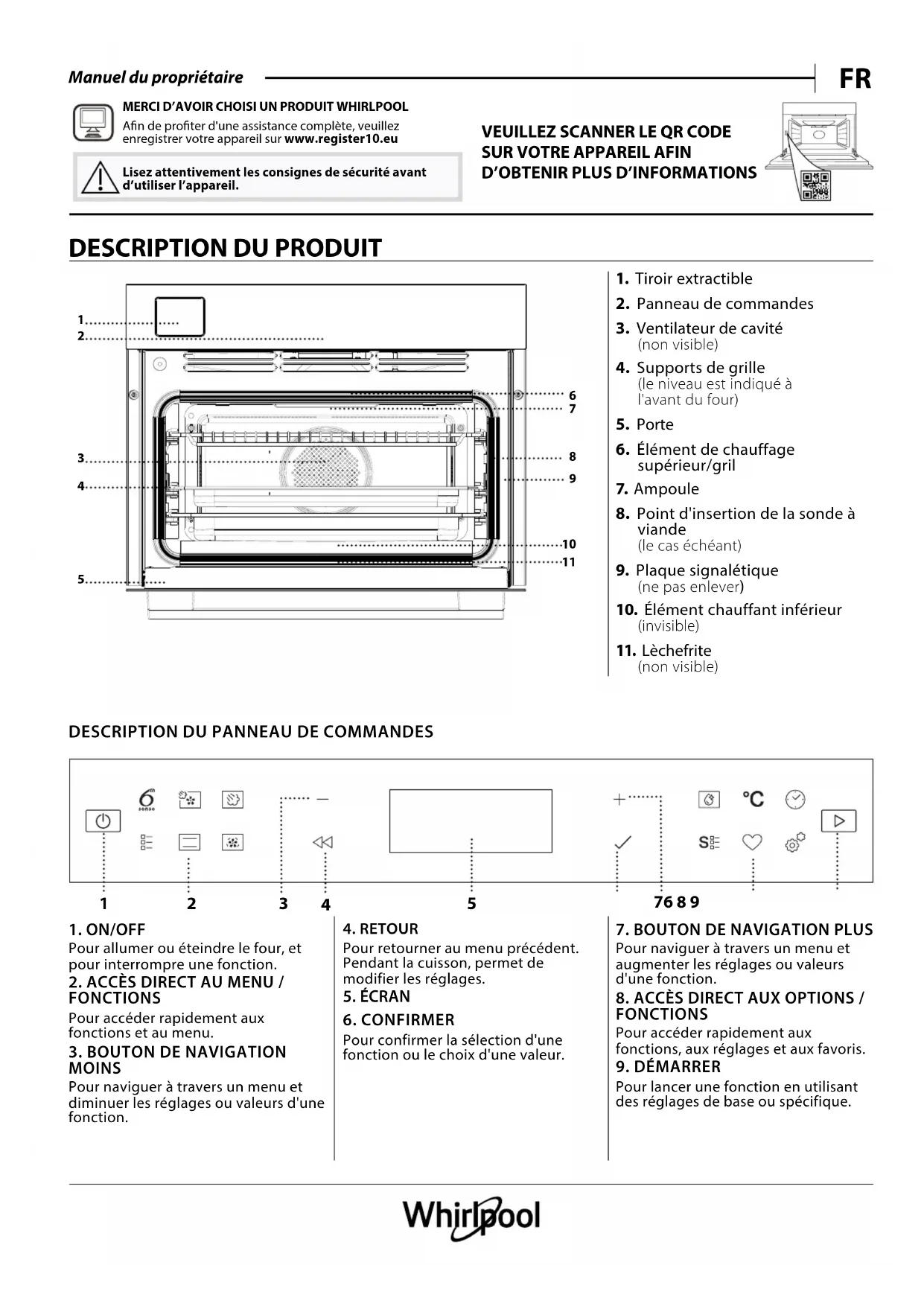 WCS7A9PHTSSGA - Four WHIRLPOOL - Notice d'utilisation et mode d'emploi gratuit
