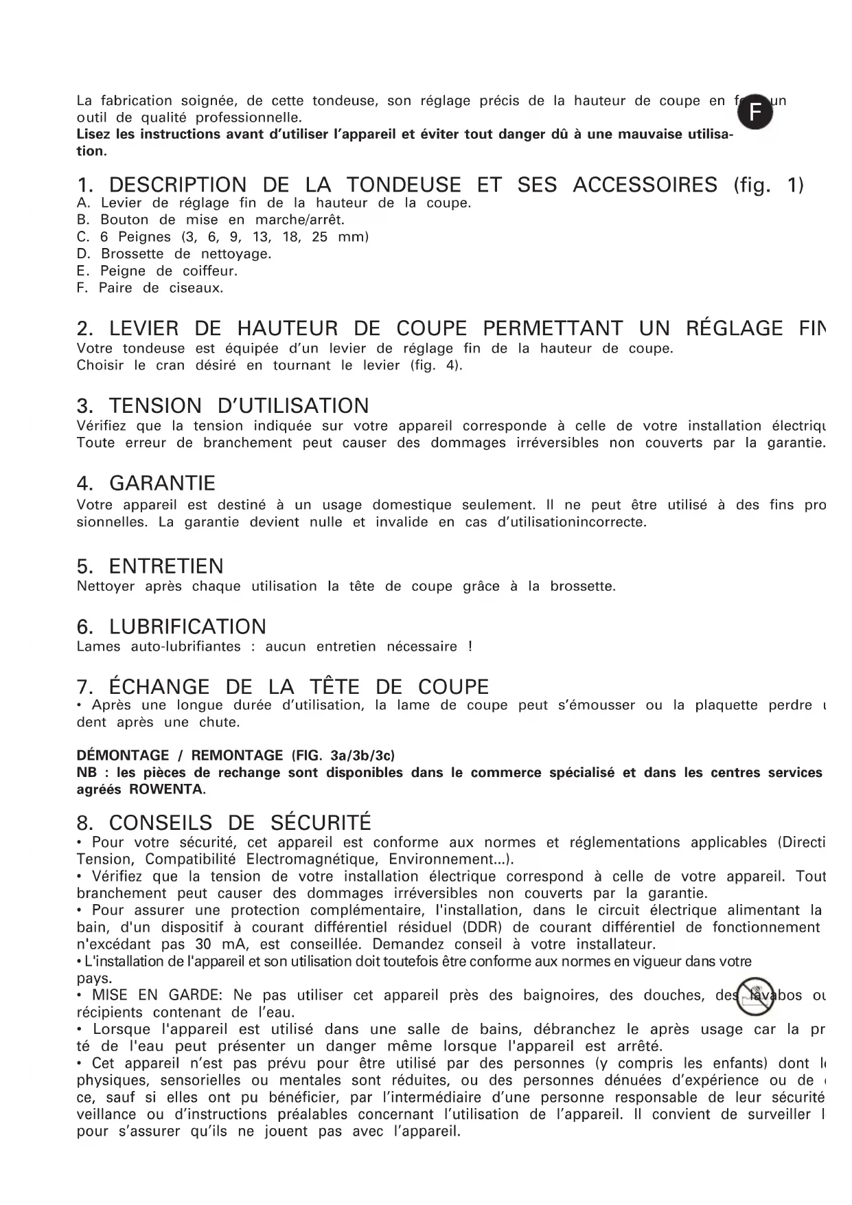 1. DESCRIPTION DE LA TONDEUSE ET SES ACCESSOIRES (fig. 1)