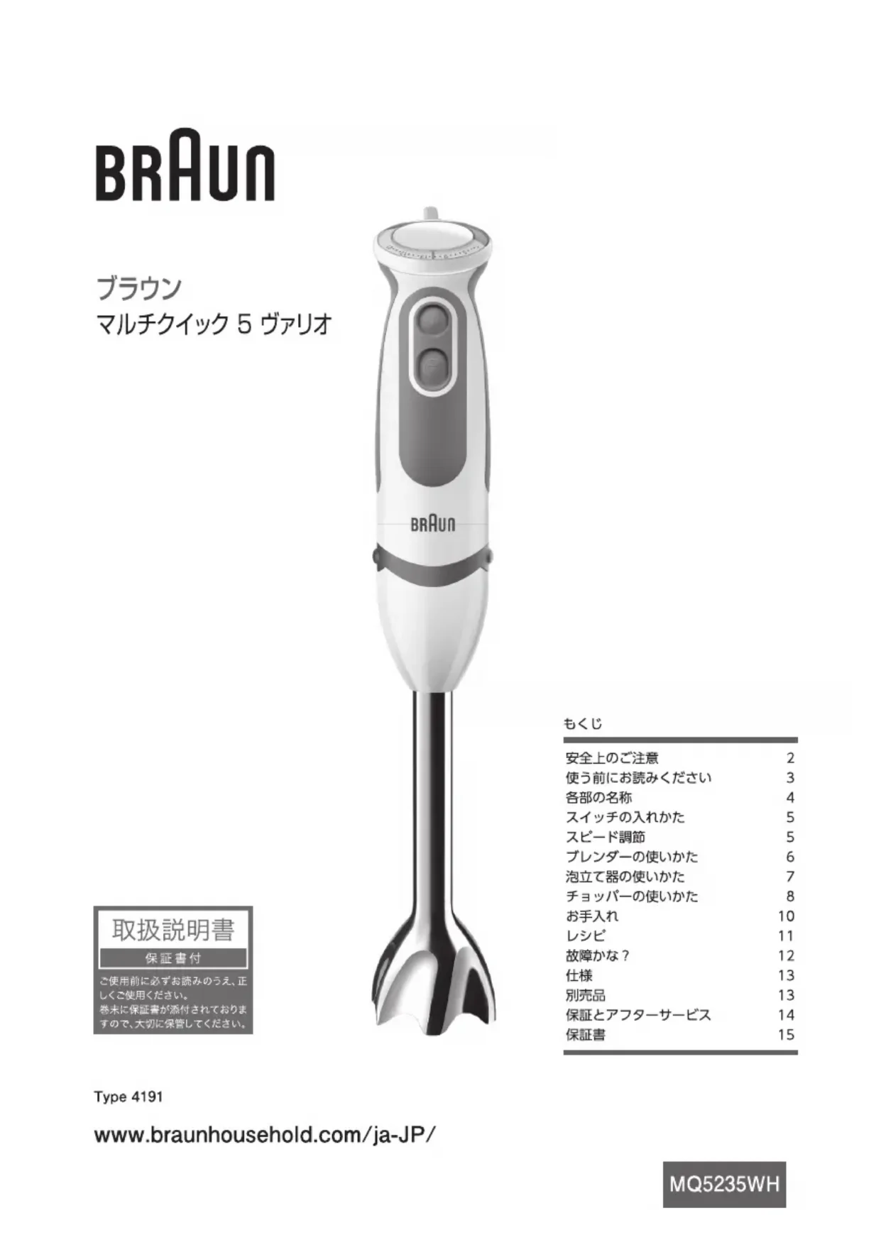 MultiQuick 5 Vario MQ 5235 - Mixeur plongeant BRAUN - Notice d'utilisation et mode d'emploi gratuit