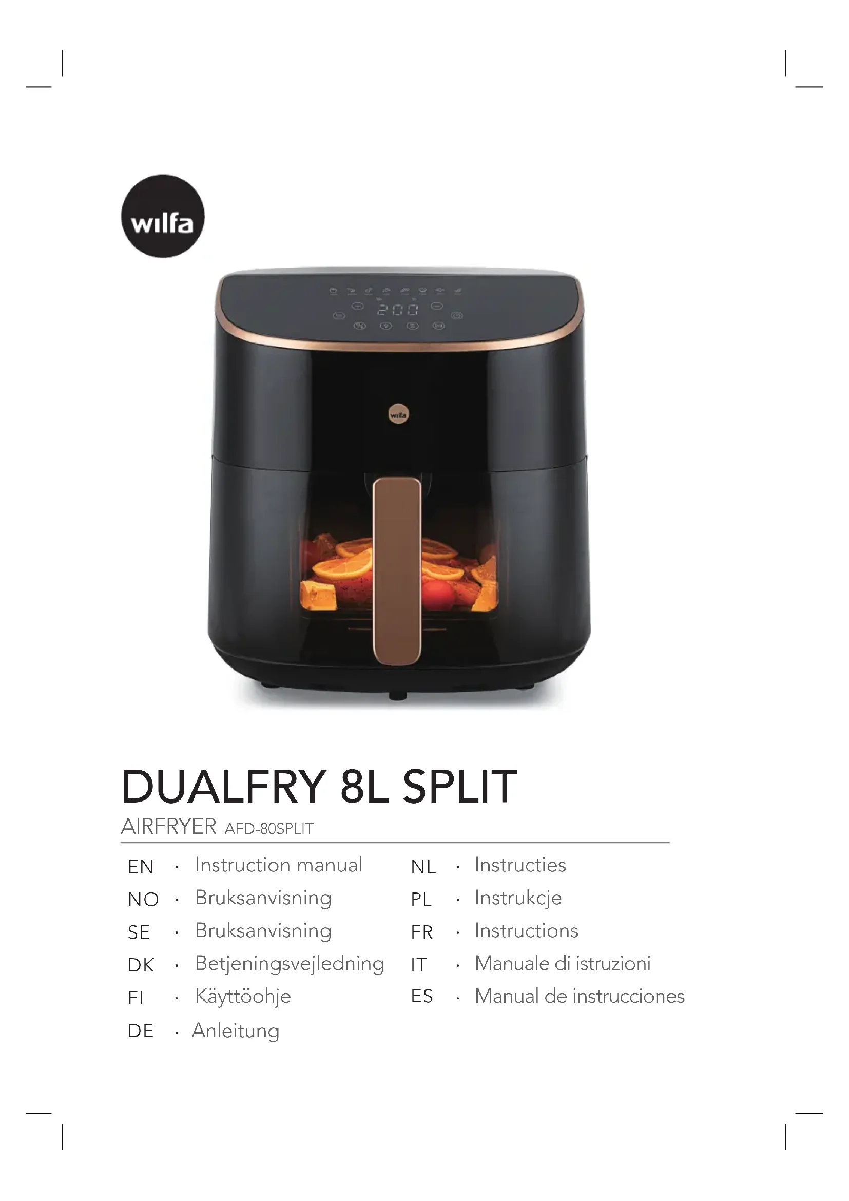 Retrouvez gratuitement la notice de l'appareil DualFry 8L Split AFD80 WILFA au format PDF.