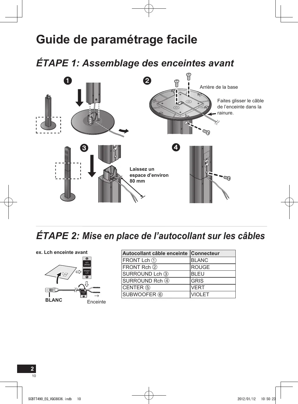 Guide de paramétrage facile Système Cinéma Maison Blu-ray Disc™ FRANÇAIS Guide de paramétrage facile ÉTAPE 1: Assemblage des enceintes avant