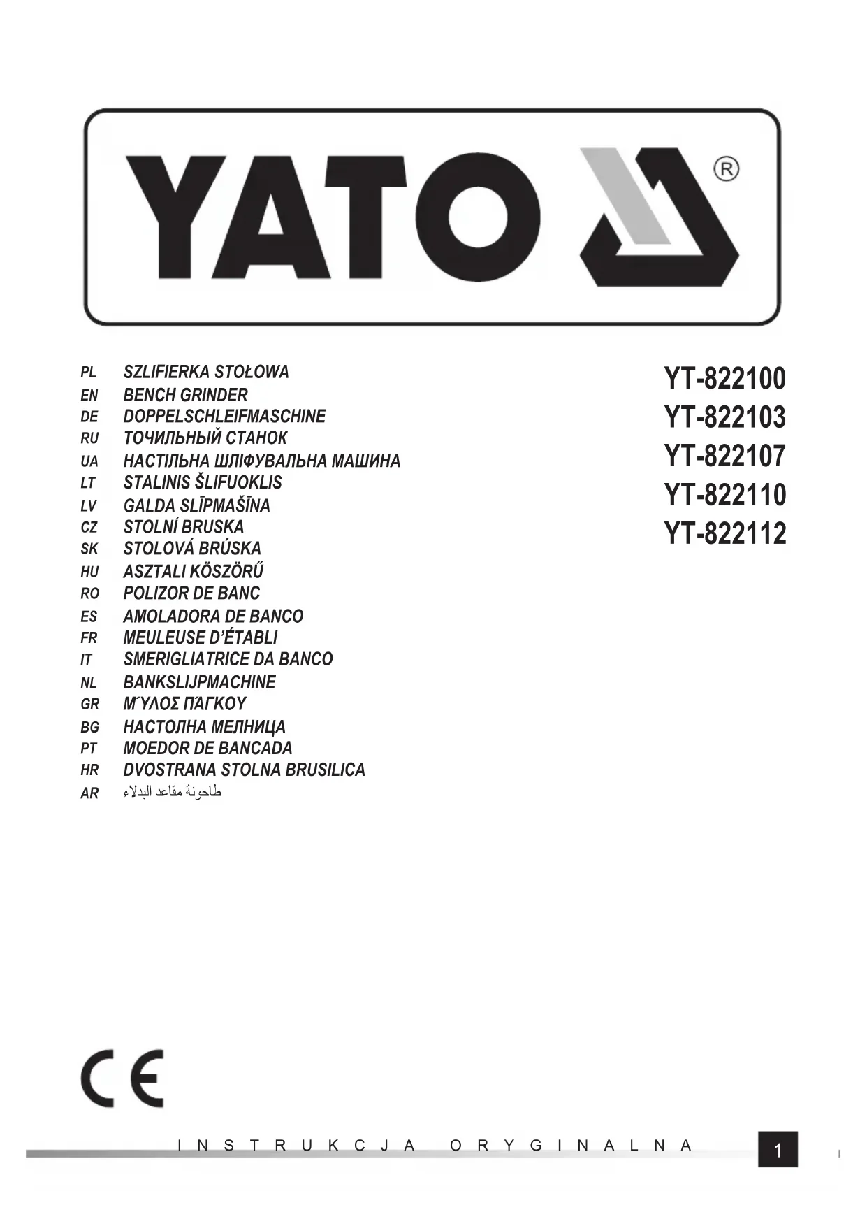 Retrouvez gratuitement la notice de l'appareil YT822103 Yato au format PDF.