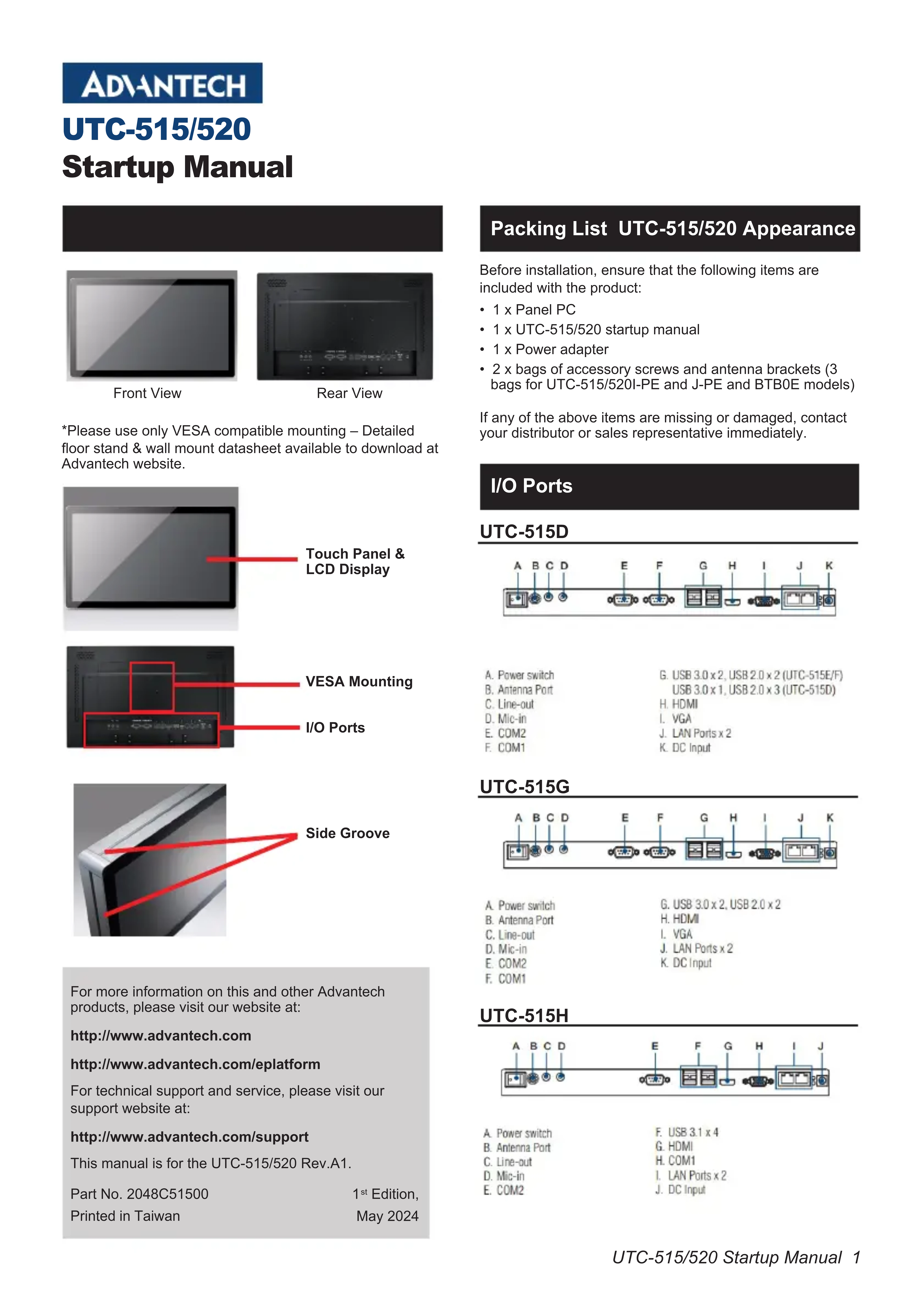 Retrouvez gratuitement la notice de l'appareil UTC515H Advantech au format PDF.
