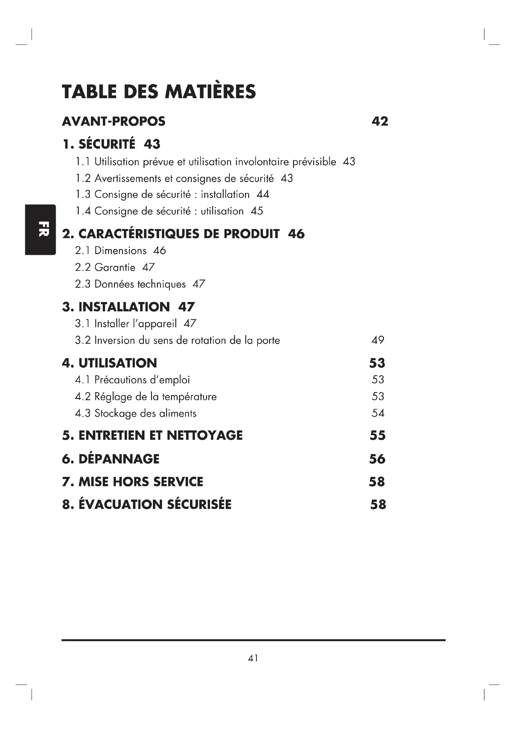 1.1 Utilisation prévue et utilisation involontaire prévisible 43