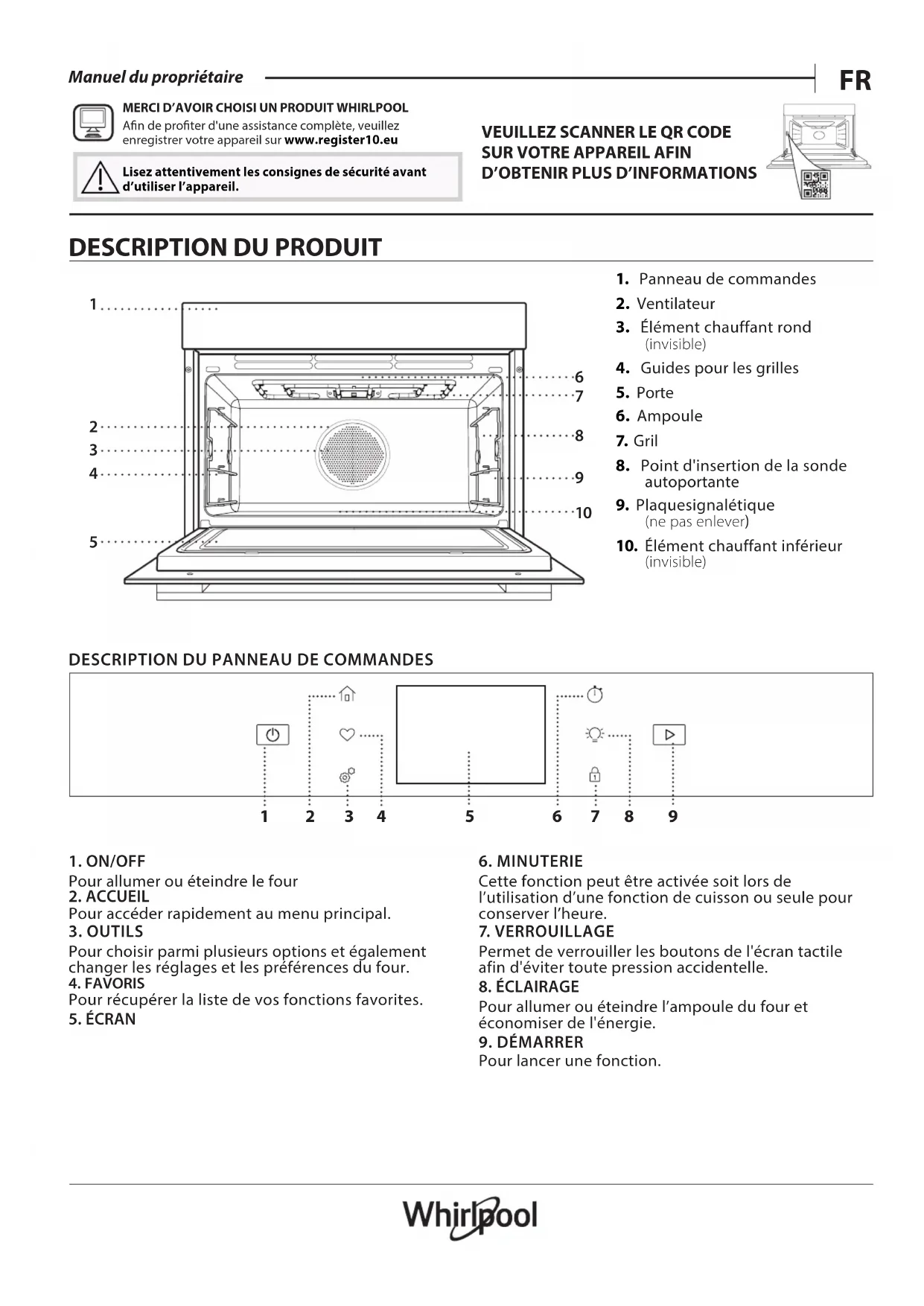 WCW9O7PHTSB - Four WHIRLPOOL - Notice d'utilisation et mode d'emploi gratuit