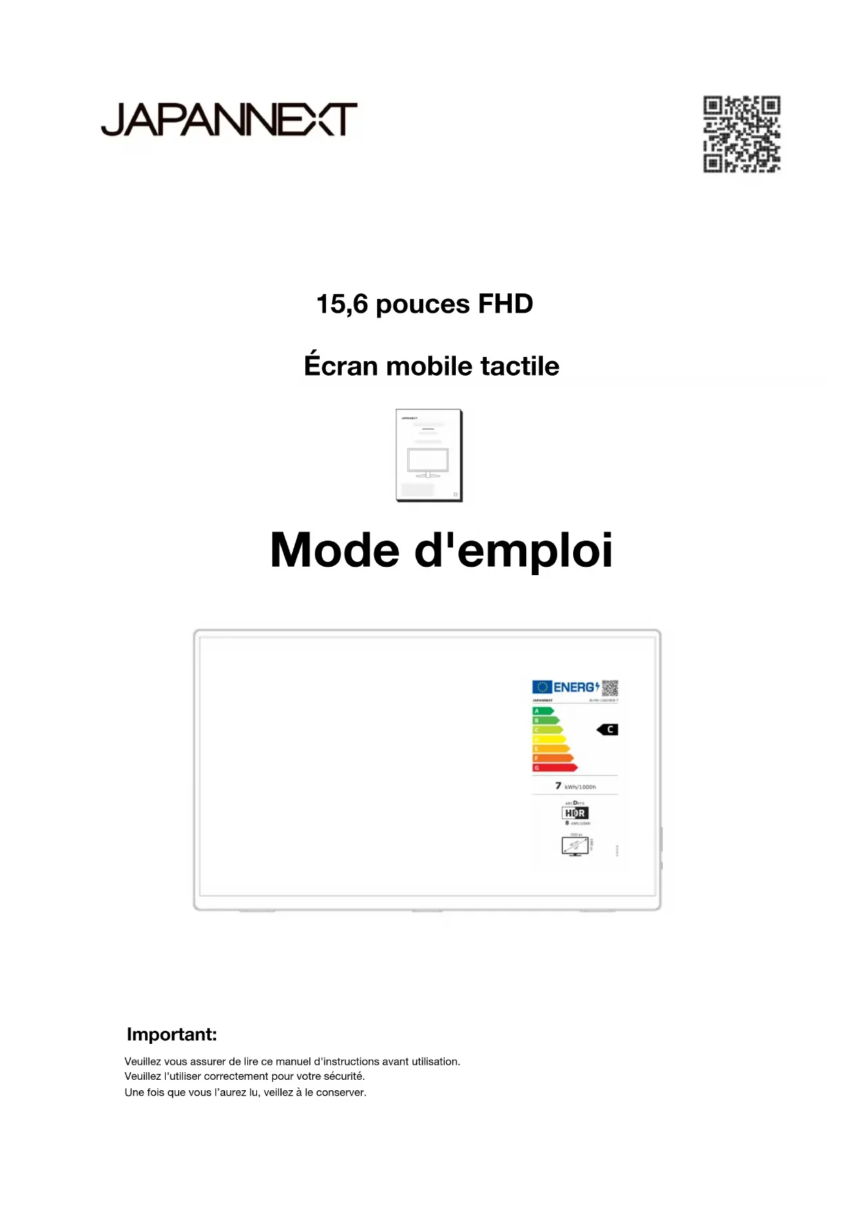Merci d'avoir acheté le moniteur tactile FHD 15,6 pouces JAPANNEXT.