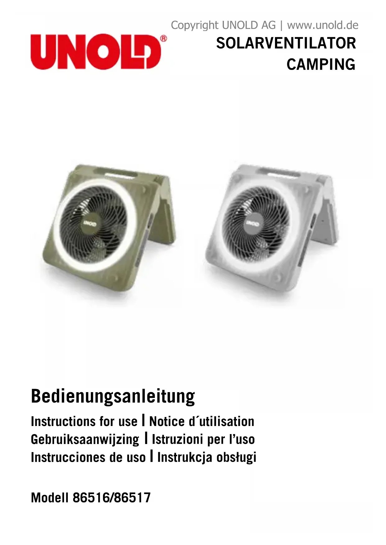 Camping 86517 - Ventilateur UNOLD - Notice d'utilisation et mode d'emploi gratuit