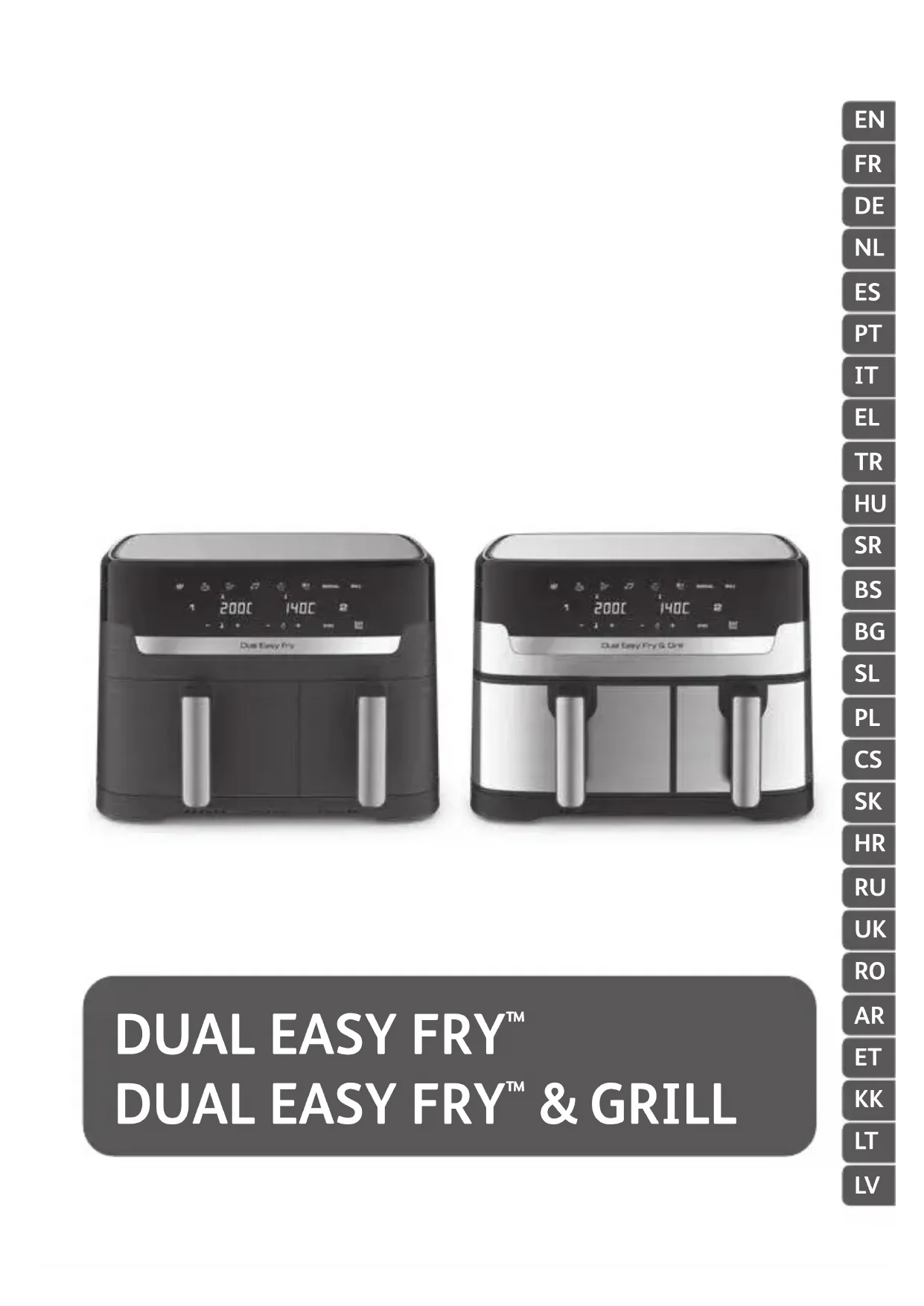 Retrouvez gratuitement la notice de l'appareil Dual Easy Fry & Grill EY905M TEFAL au format PDF.