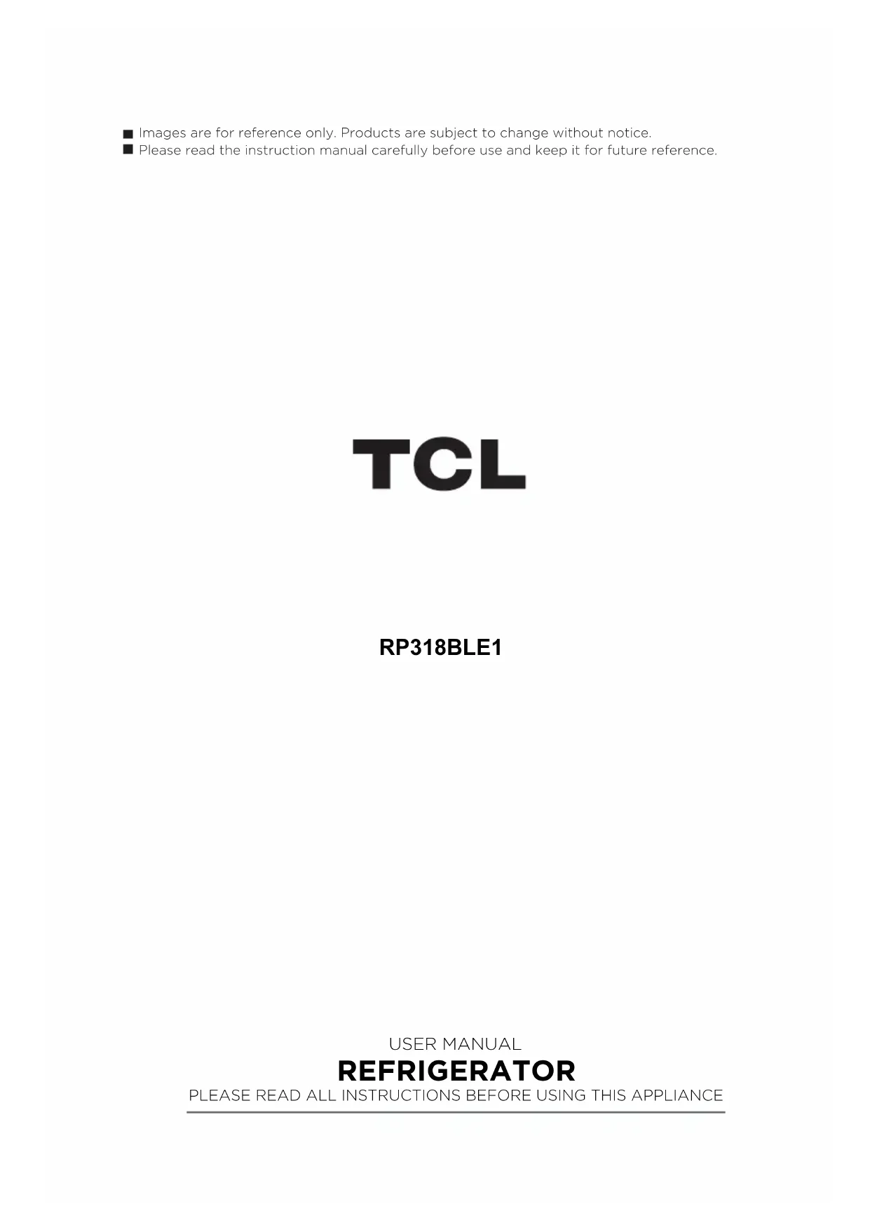 RP318BLE1 - Réfrigérateur TCL - Notice d'utilisation et mode d'emploi gratuit