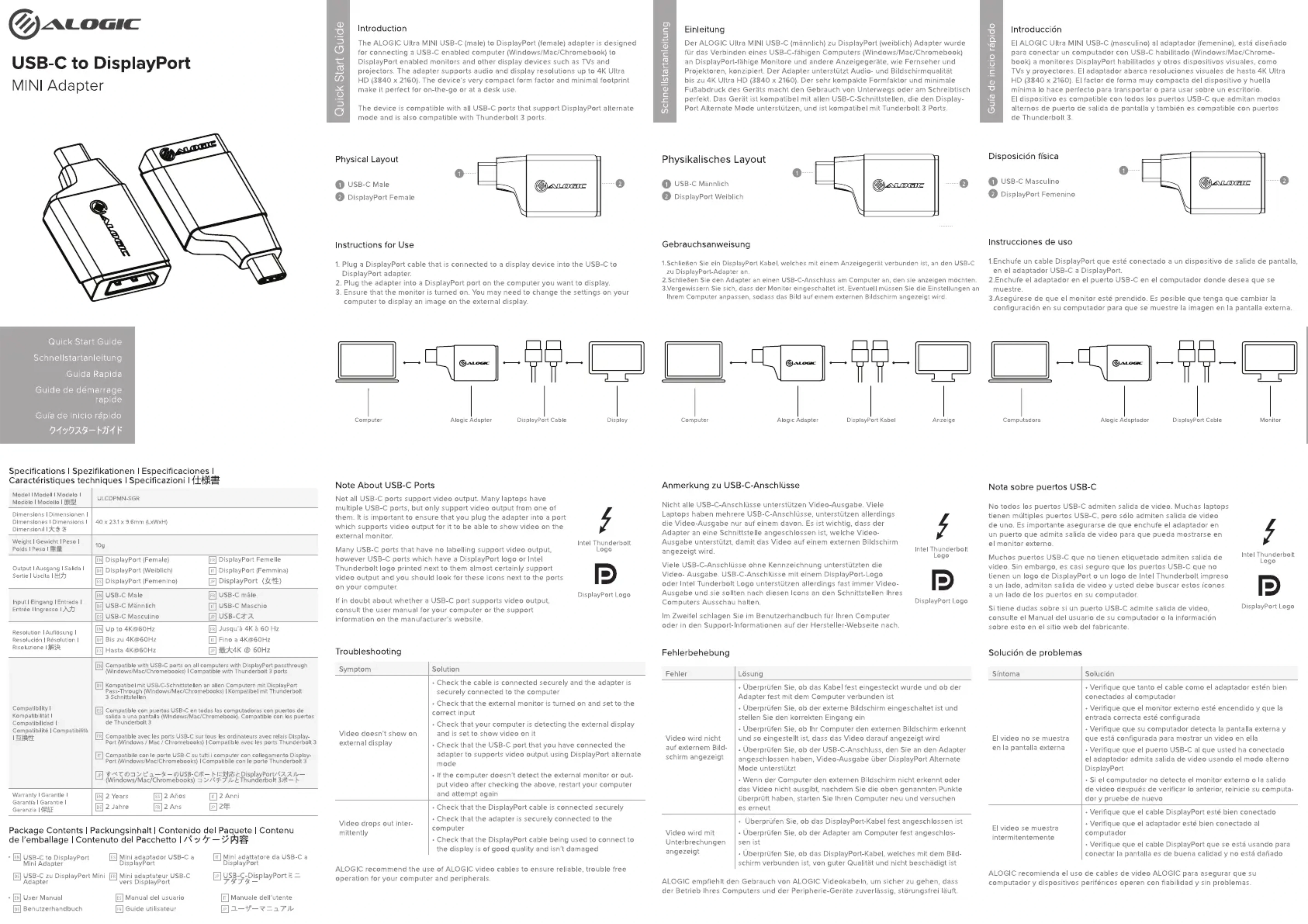 ULCDPMNSGR - Câble pour ordinateur et périphérique Alogic - Notice d'utilisation et mode d'emploi gratuit