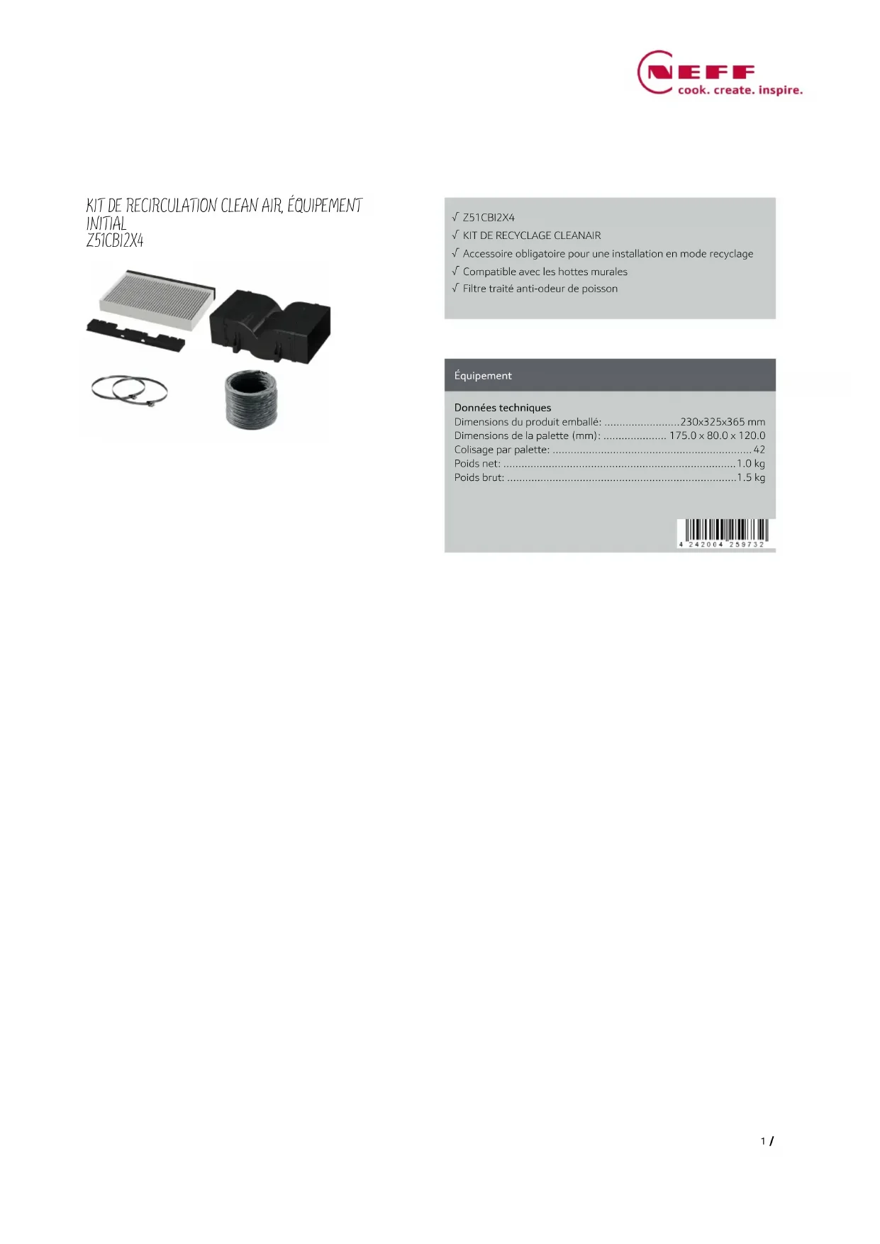 - .0 kg Poids brut: .5 kg 1 /Kit de recirculation clean air, équipement initial Z51cBi2X4 Équipement p. 1
