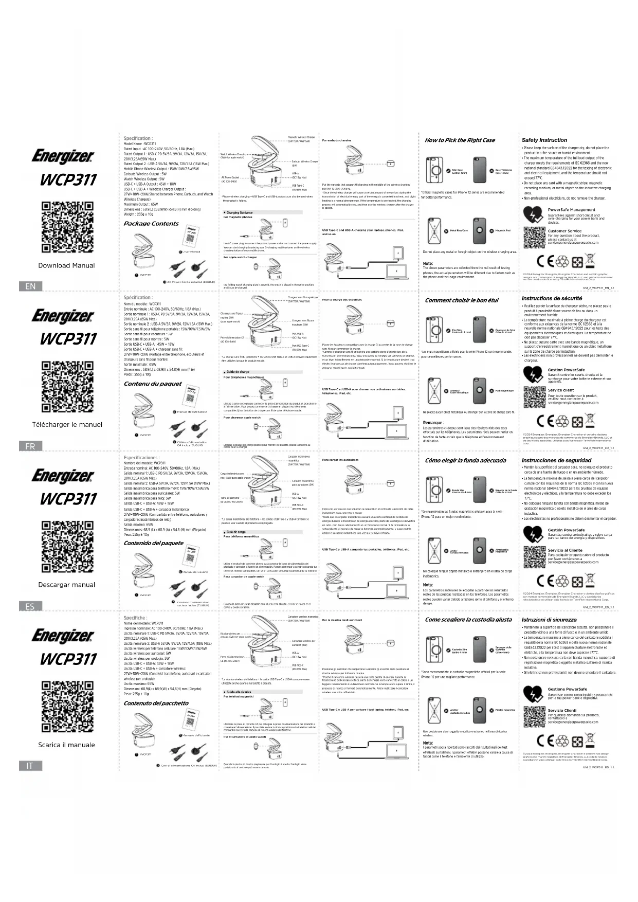 WCP311 - Chargeur téléphone portable ENERGIZER - Notice d'utilisation et mode d'emploi gratuit