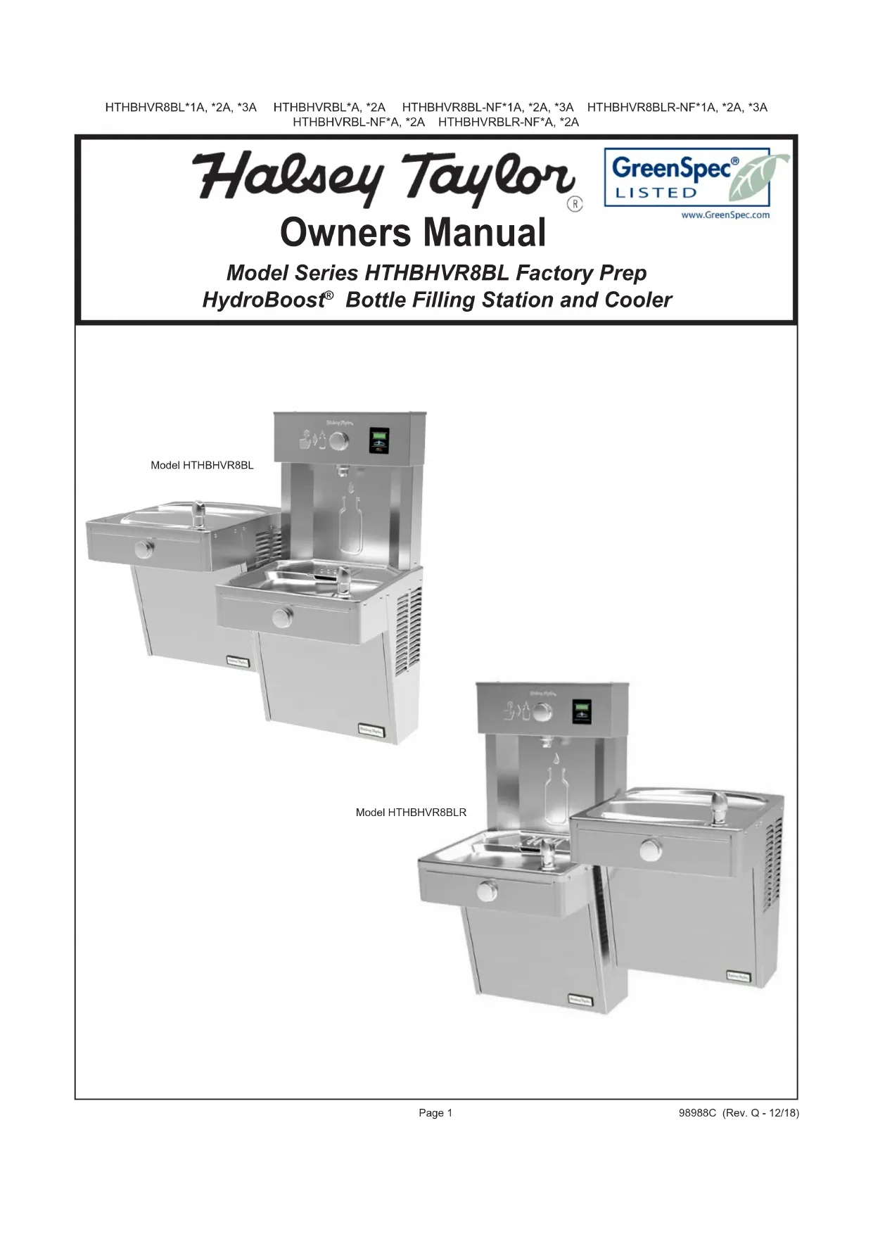 HydroBoost HTHBHVRBLNF - Fontaine a eau Halsey Taylor - Notice d'utilisation et mode d'emploi gratuit