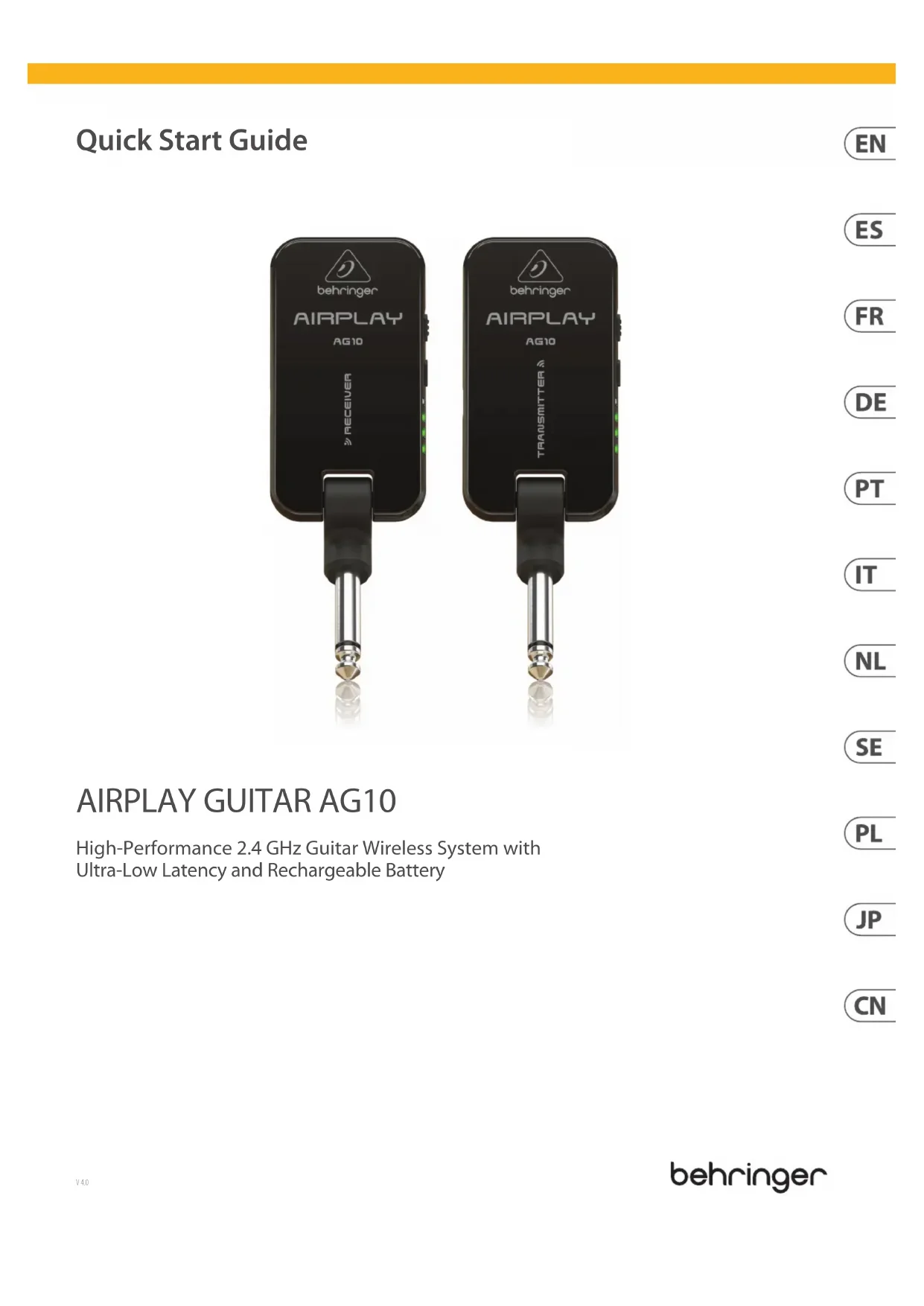 MODE D'EMPLOI Airplay Guitar AG10 BEHRINGER