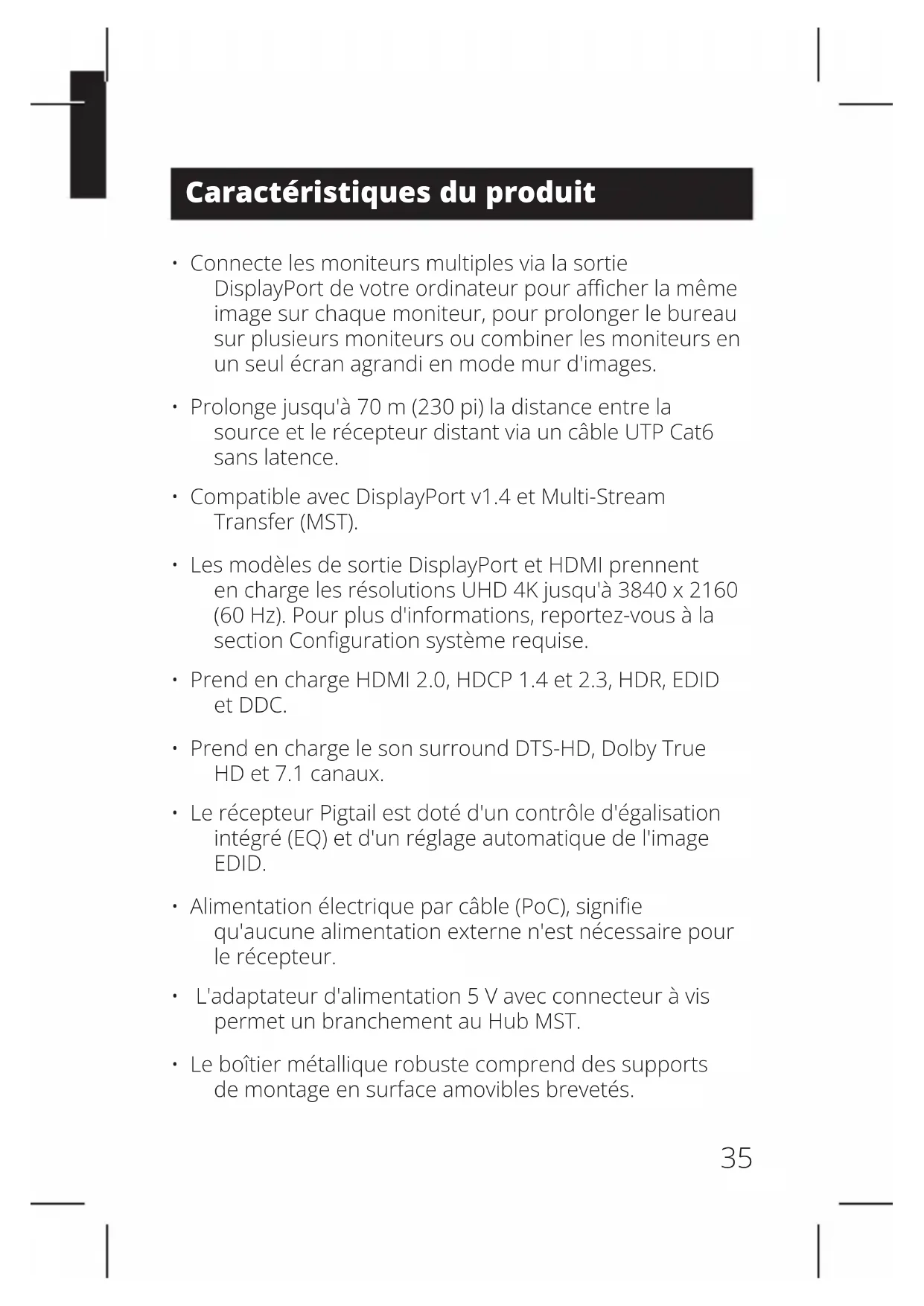 - Compatible avec DisplayPort v1.4 et Multi-Stream Transfer (MST).