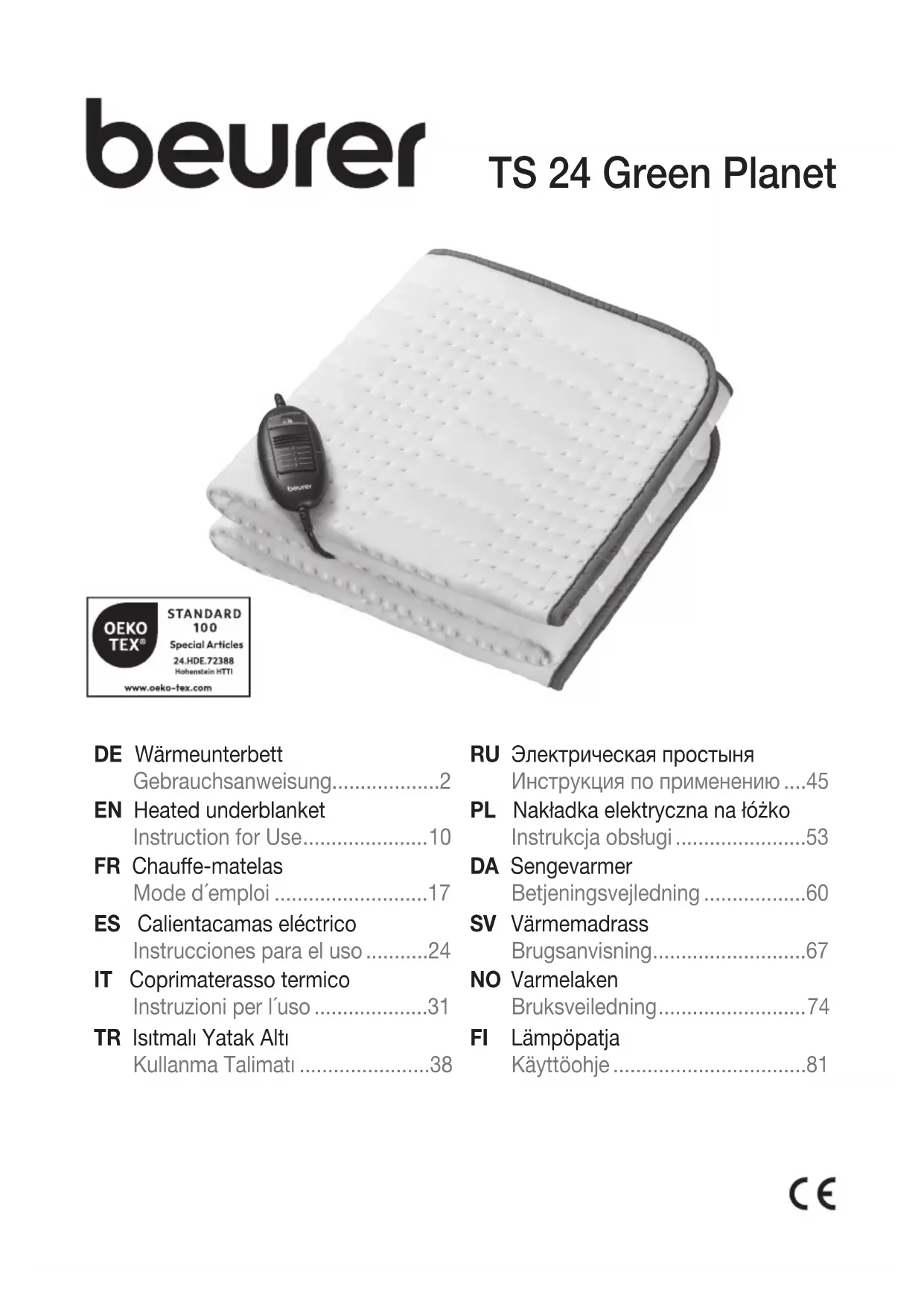 TS 24 Green Planet - Couverture/coussin chauffant BEURER - Notice d'utilisation et mode d'emploi gratuit