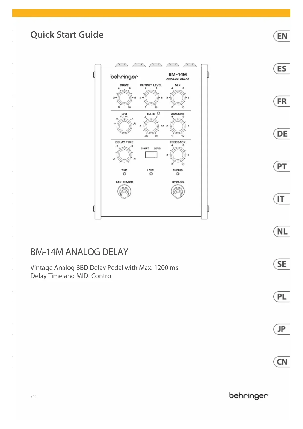 Analog Delay BM14M - Guitare BEHRINGER - Notice d'utilisation et mode d'emploi gratuit
