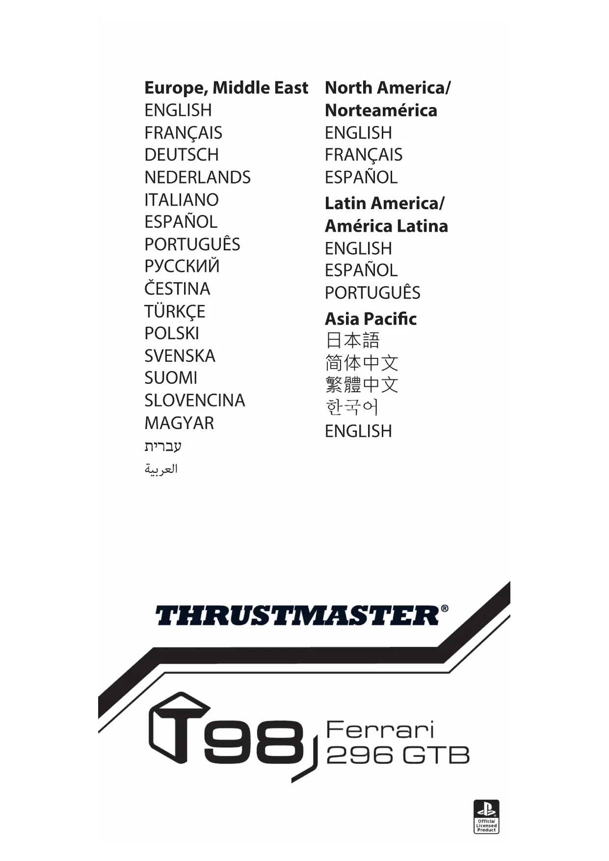 Retrouvez gratuitement la notice de l'appareil T98 Ferrari 296 GTB THRUSTMASTER au format PDF.