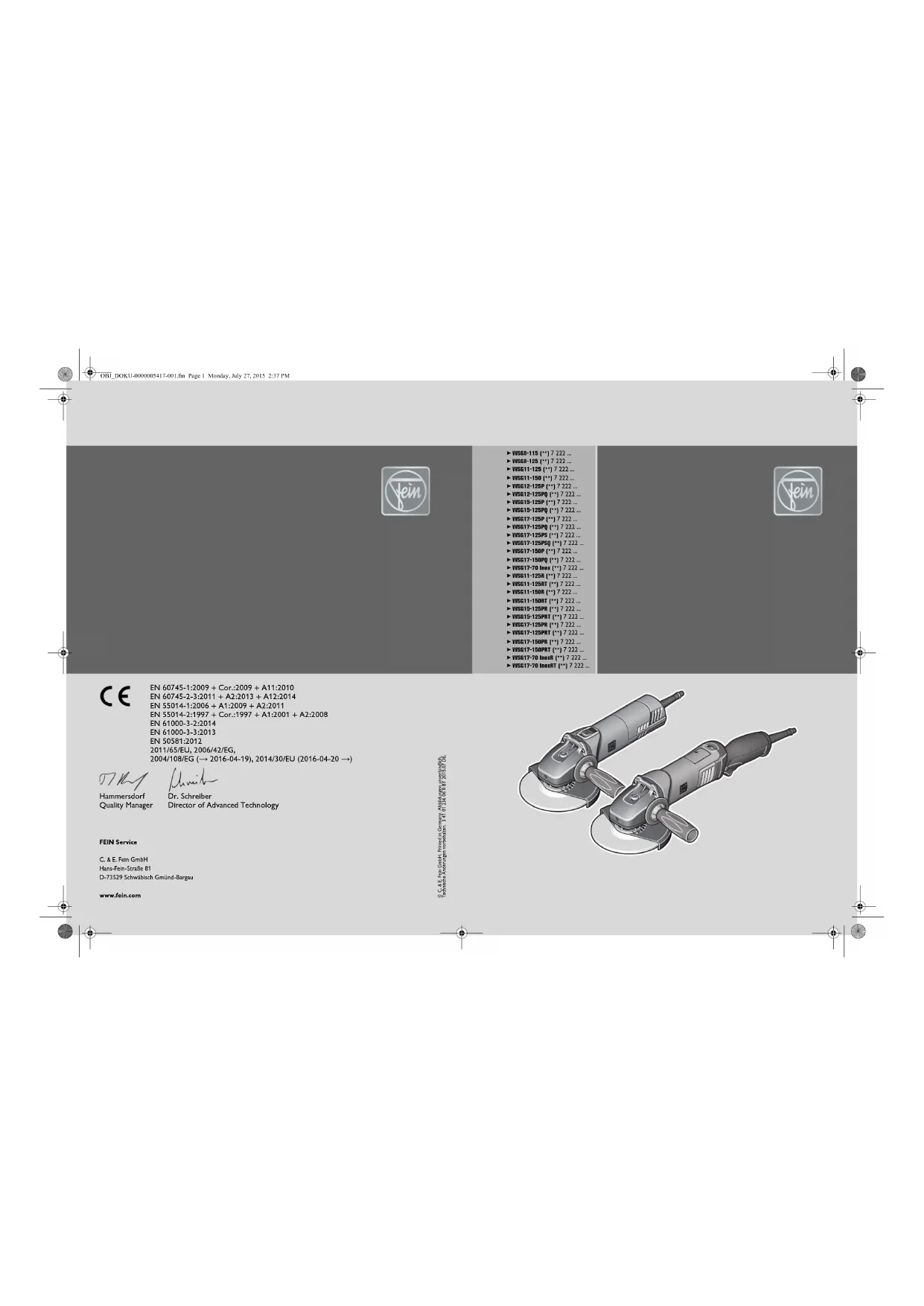 Retrouvez gratuitement la notice de l'appareil WSG 17125 PSQ Fein au format PDF.