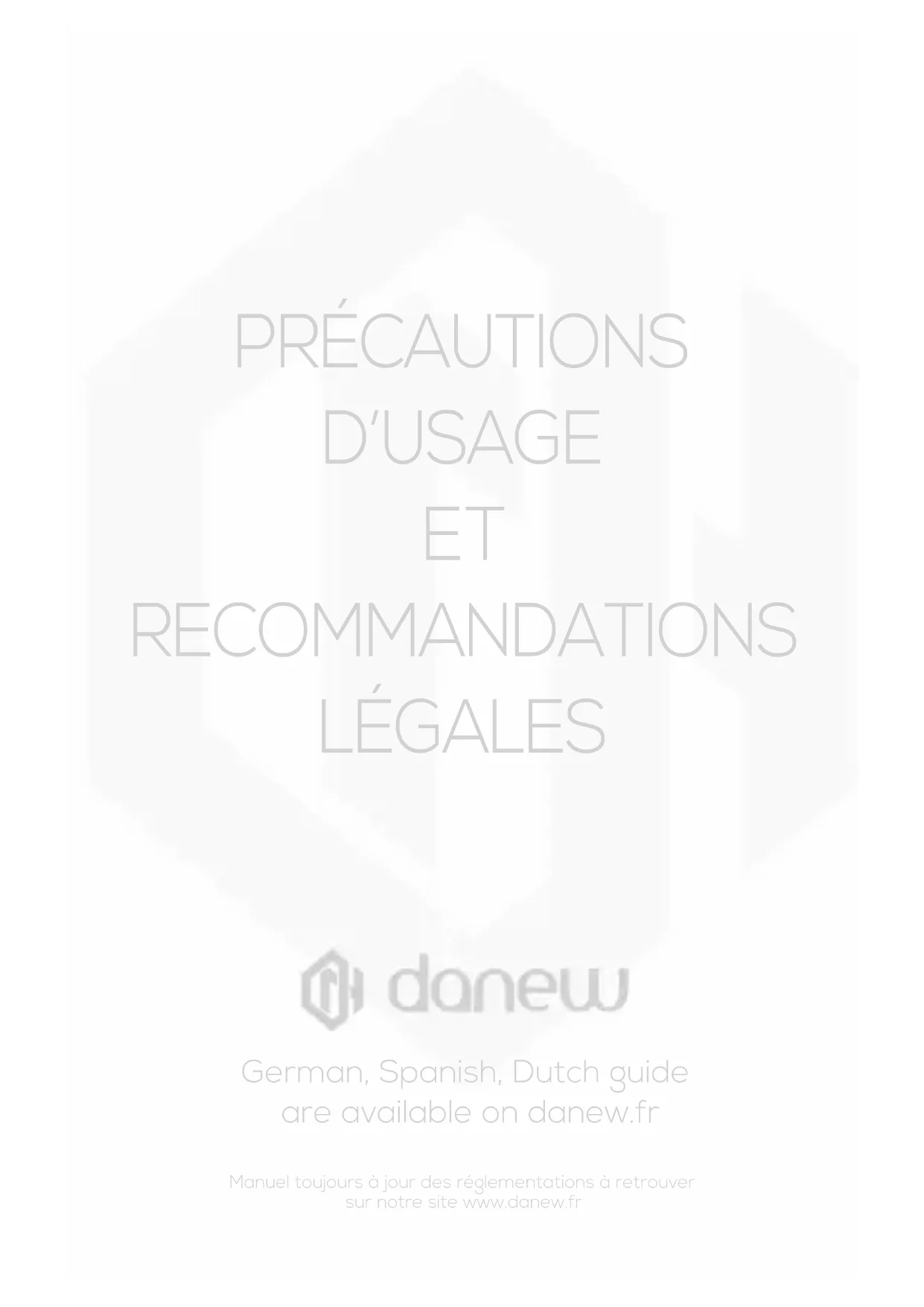 RECOMMANDATIONS LÉGALES German, Spanish, Dutch guide are available on danew.fr Manuel toujours à jour des réglementations à retrouver sur notre site www.danew.fr2 Selon l’Organisaon mondiale de la santé, « de nombreuses études ont été réalisées au cours de ces vingt dernières années an d’évaluer le risque que présentent les tab- lees et téléphones portables pour la santé. À ce jour, l’impact négaf de l’ulisaon de ces appareils sur la santé n’a pas été démontré » (Aide-mémoire N° 193). Con- formément à la réglementaon française, nous sommes tenus d’inclure les recom- mandaons suivantes concernant les mesures de précauon : vous pouvez limiter votre exposion à l’énergie des radiofréquences (a) en ulisant votre appareil dans des zones où la couverture réseau est bonne, ou (b) en ulisant un kit mains libres an d’éloigner l’appareil de votre tête et de votre corps. Dans ce cas, il est recommandé aux femmes enceintes d’éloigner l’appareil de leur abdomen. Il est également recom- mandé aux adolescents d’éloigner leur appareil de la pare inférieure de leur abdomen. Votre appareil Danew a été conçu dans le respect des exigences réglementaires naonales et internaonales. Pour accéder aux déclaraons de conformité dans leur intégralité et aux détails, veuillez vous reporter aux informaons réglementaires gurant dans le manuel de votre appareil. Danew déclare que l’équipement du type DSlide 809 Pro+ est conforme aux exigences essenelles et aux disposions applicables de la Direcve 2022/2380 modiant la Direcve 2014/53/UE (RED). La déclaraon de conformité complète est disponible en ligne : hps:// danew.fr/declaraon-de-conformite/ Le contenu de ce guide peut diérer par rapport à votre appareil en foncon de votre zone géographique, votre opérateur ou votre version logicielle, et faire l’objet de modicaons sans préavis. Énergie des radiofréquences - France Informaons réglementaires Déclaraon de conformité aux direcves de l’Union européenne3 Les appareils Danew peuvent fournir aux applicaons des informaons sur leur posion approximave via des sources telles que le GPS, l’AGPS et le Wi-Fi. Le système GPS (Global Posioning System) ulise des satellites publics qui peuvent faire l’objet de modicaons dont l’applicaon est conforme à la polique du Ministère de la Défense et du plan naonal de radionavigaon. Votre appareil peut également uliser les signaux Wi-Fi pour déterminer sa posion approximave, grâce aux données émanant de réseaux Wi-Fi reconnus et dis- ponibles. Les appareils transmeent des informaons de localisaon lorsqu’ils sont connectés à un réseau sans l ou lorsqu’ils ulisent d’autres technologies de localisaon telles que le GPS. Si vous ulisez des applicaons dont le fonconnement nécessite des informaons de locali- saon, comme le téléguidage, votre appareil leur fournira ces informaons. Ces applicaons peuvent partager les informaons de localisaon avec des ers, y compris des fournisseurs d’applicaons, Danew et d’autres prestataires de services ers. Danew est conscient de l’importance de la condenalité et de la sécurité des données aux yeux des consommateurs. Certaines foncons de votre appareil étant suscepbles d’aecter votre vie privée ou la sécurité des données, veuillez suivre les recommandaons suivantes an d’augmenter la protecon de vos informaons personnelles :