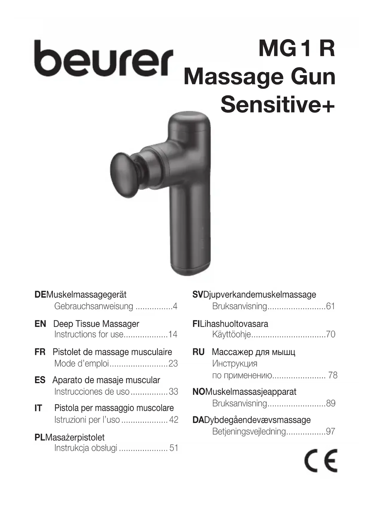 MG 1 R Sensitive+ - Appareil de massage BEURER - Notice d'utilisation et mode d'emploi gratuit