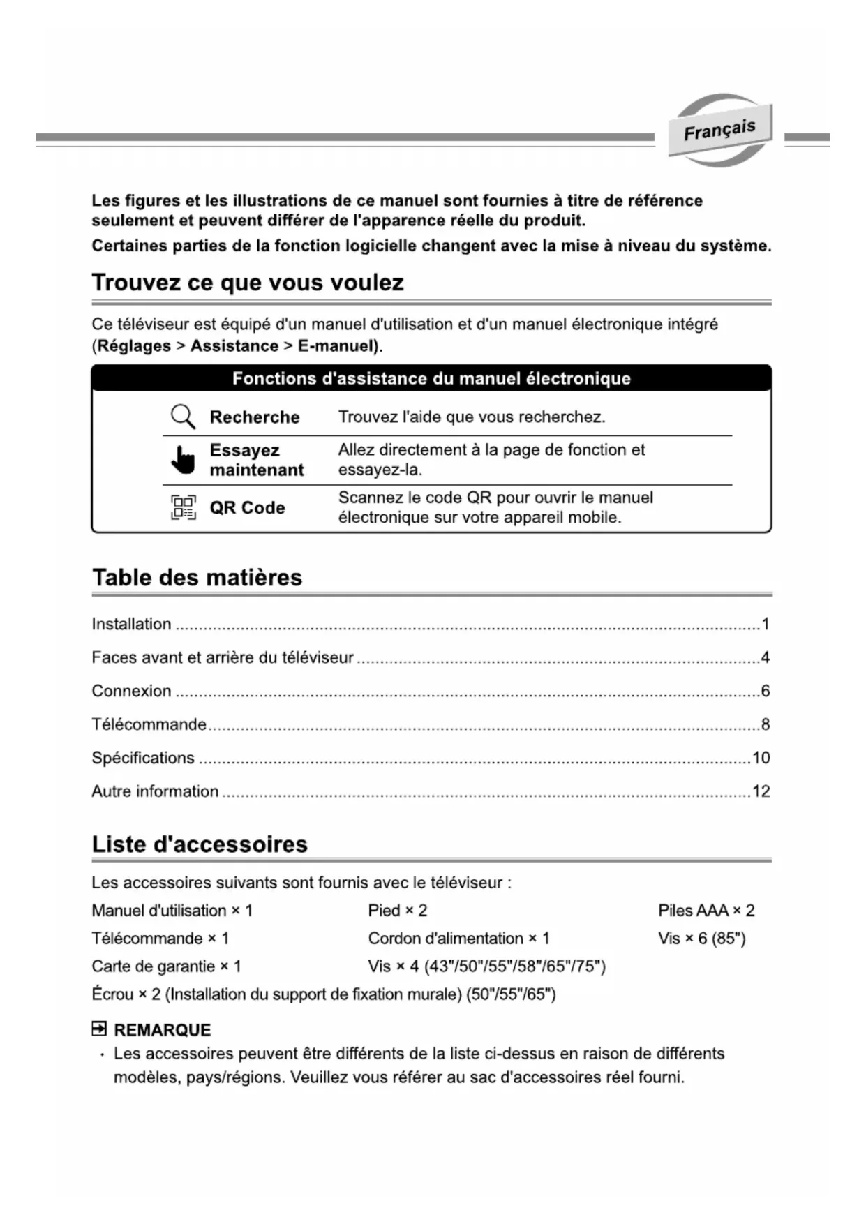 85A6Q - Téléviseur HISENSE - Notice d'utilisation et mode d'emploi gratuit