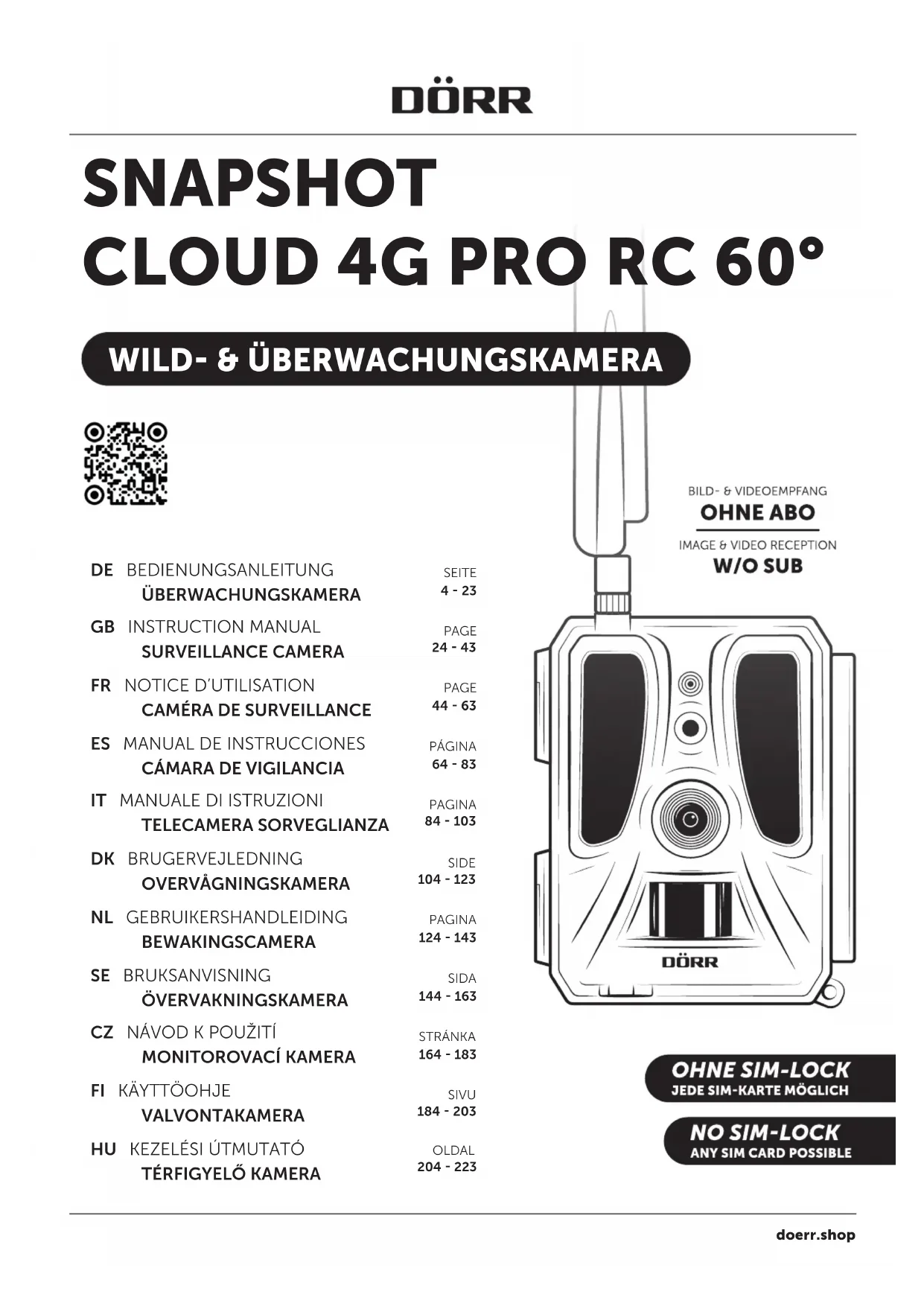 Retrouvez gratuitement la notice de l'appareil SnapShot Cloud 4G Pro RC 60° Dörr au format PDF.