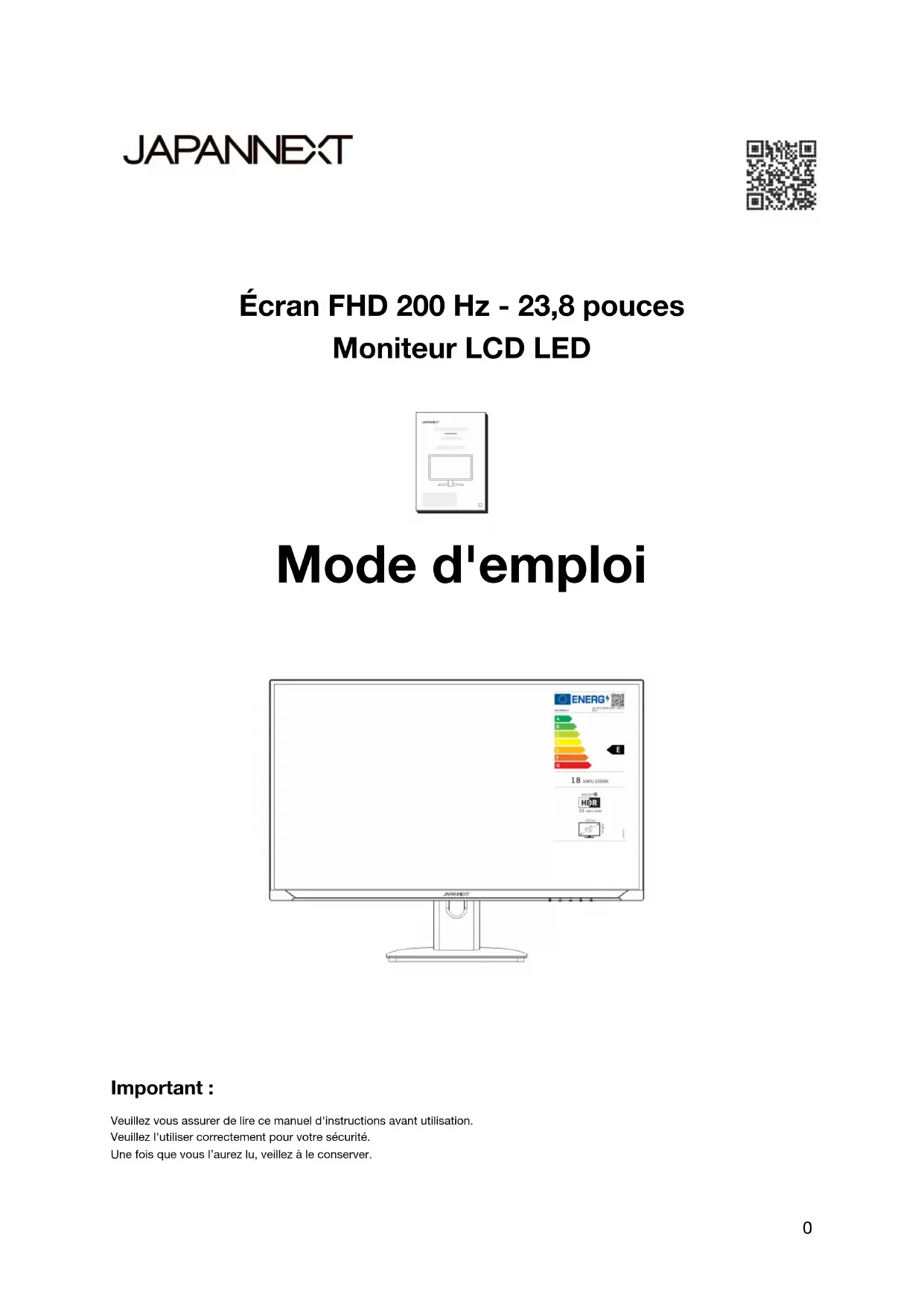 JNIPS238FHD200FHSPCAMO - Moniteur Japannext - Notice d'utilisation et mode d'emploi gratuit