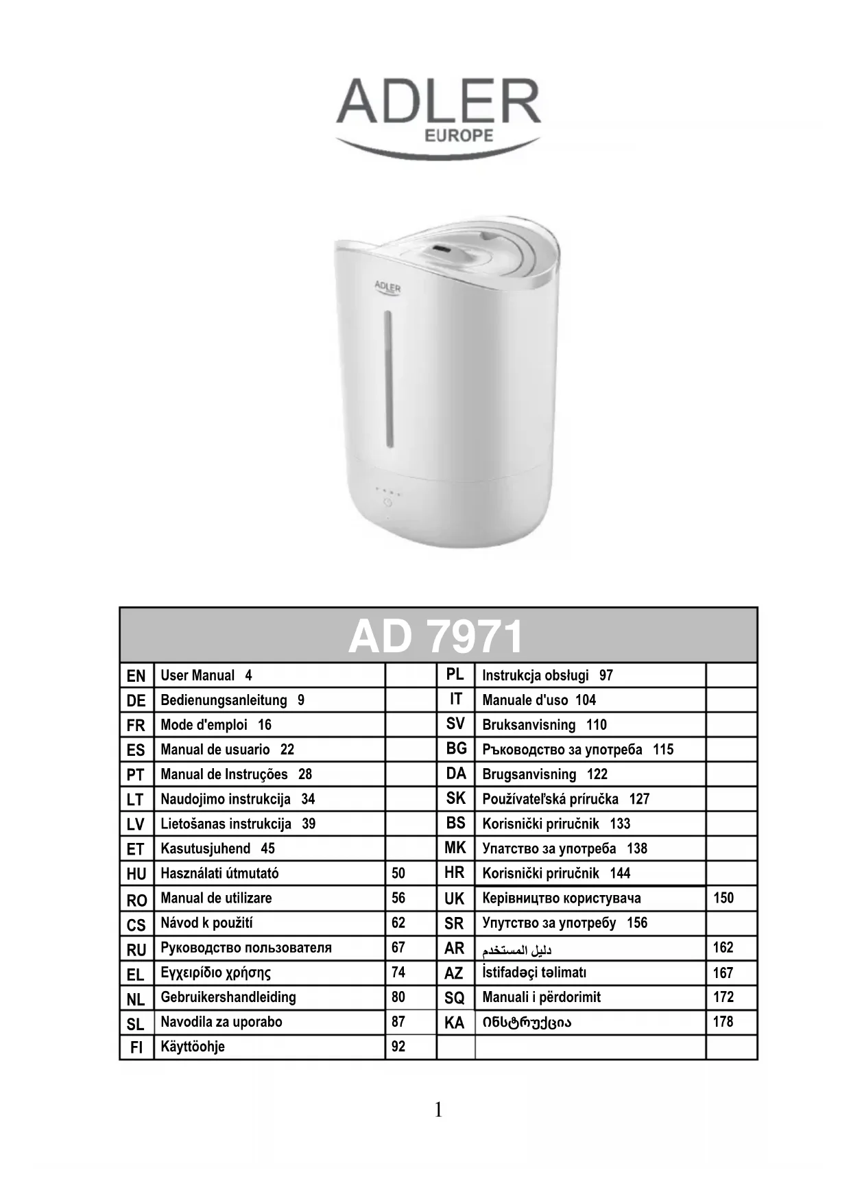 AD 7971 - Humidificateur ADLER - Notice d'utilisation et mode d'emploi gratuit
