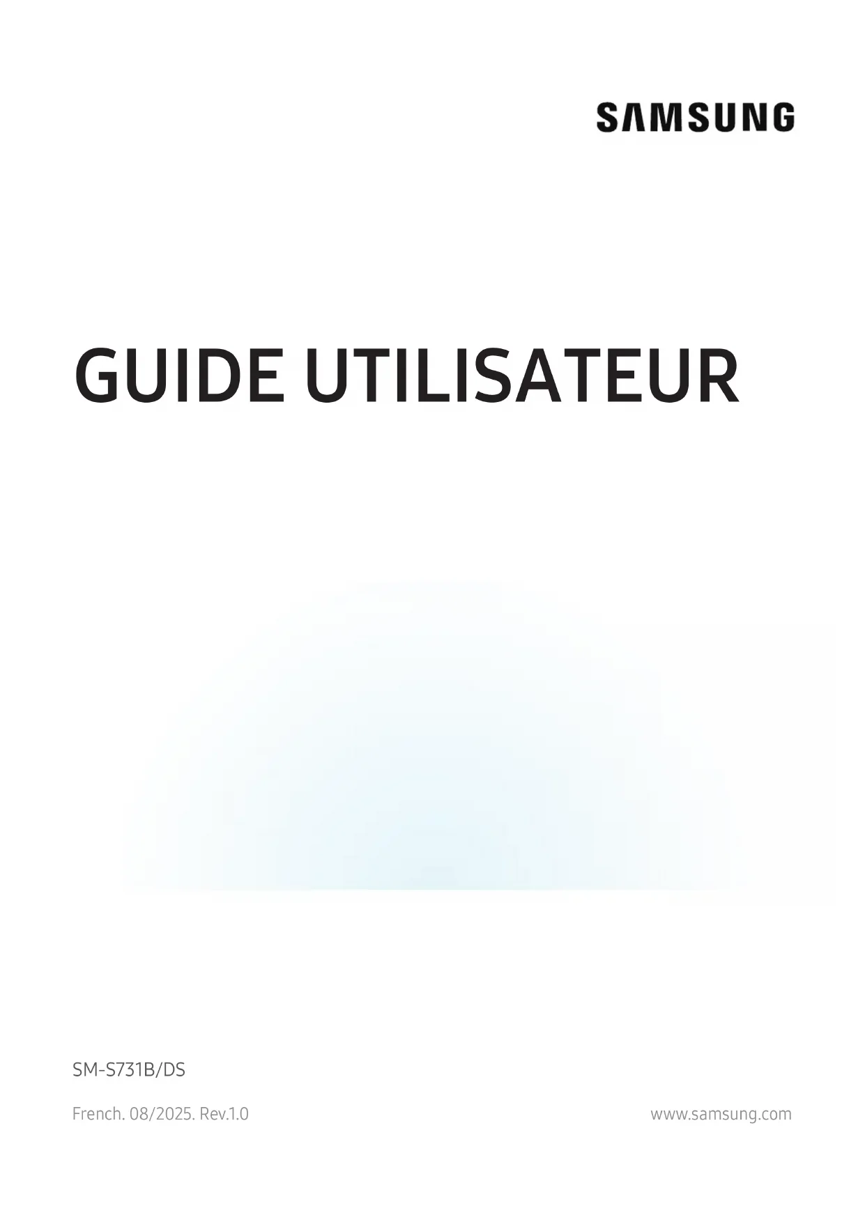 www.samsung.comFrench. 08/2025. Rev.1.0 GUIDE UTILISATEUR SM-S731B/DS2 Table des matières Démarrage 5 Présentation de l’appareil et de ses fonctions 8 Charger la batterie 13 Carte nano-SIM et eSIM 15 Allumer et éteindre l’appareil 16 Configuration initiale 16 Utiliser les réseaux 16 Compte Samsung 17 Transférer des données depuis votre ancien appareil (Smart Switch) 18 Description de l’écran 25 Volet des raccourcis 26 Volet de paramétrage rapide 28 Capture et enregistrement d’écran 30 Saisir du texte 32 Extraire du texte Applications et fonctions 33 Installer ou désinstaller des applications 34 Galaxy AI 42 Téléphone 46 Contacts 49 Appareil photo 64 Galerie 69 Bixby 70 Bixby Vision 71 Multi-fenêtres (Utilisation de plusieurs applications à la fois) 72 Samsung Internet 73 Samsung Wallet 76 Samsung Health 76 Samsung Notes 77 Samsung Members 77 Samsung Kids 78 Samsung Global Goals 78 Samsung TV Plus 78 Samsung Find 78 Samsung Shop 79 Galaxy Shop 79 Galaxy Wearable 79 Calendrier 80 Reminder 81 Enregistreur vocal 82 Mes fichiers (Vérification et gestion des dossiers) 82 Horloge 82 Calculatrice 83 Gaming Hub 83 Game Booster (Configurer l’environnement de jeux) 85 SmartThings 86 Partager du contenu 87 Music Share 88 Smart View (Utiliser l’écran du téléviseur en mode miroir) 88 Samsung DeX 90 Applications GoogleTable des matières