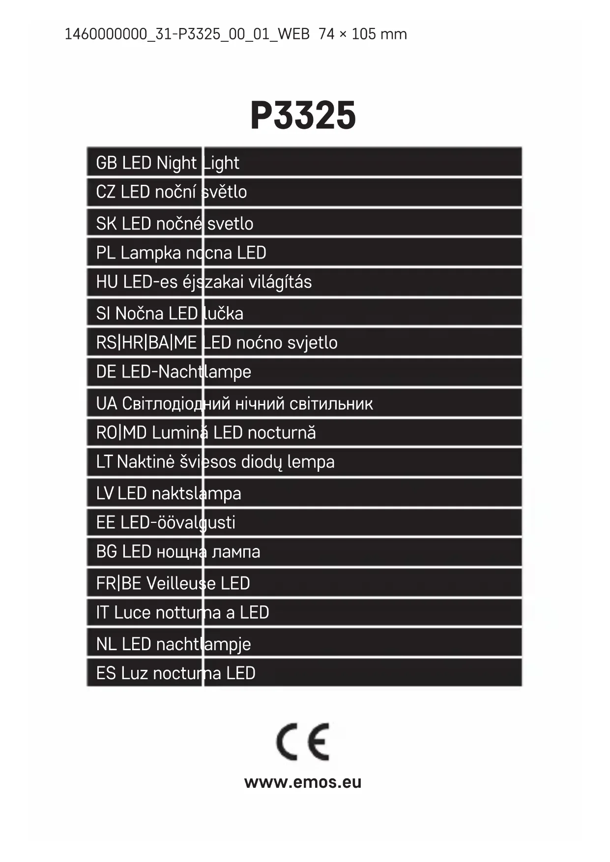 P3325 - Lampe de nuit Emos - Notice d'utilisation et mode d'emploi gratuit