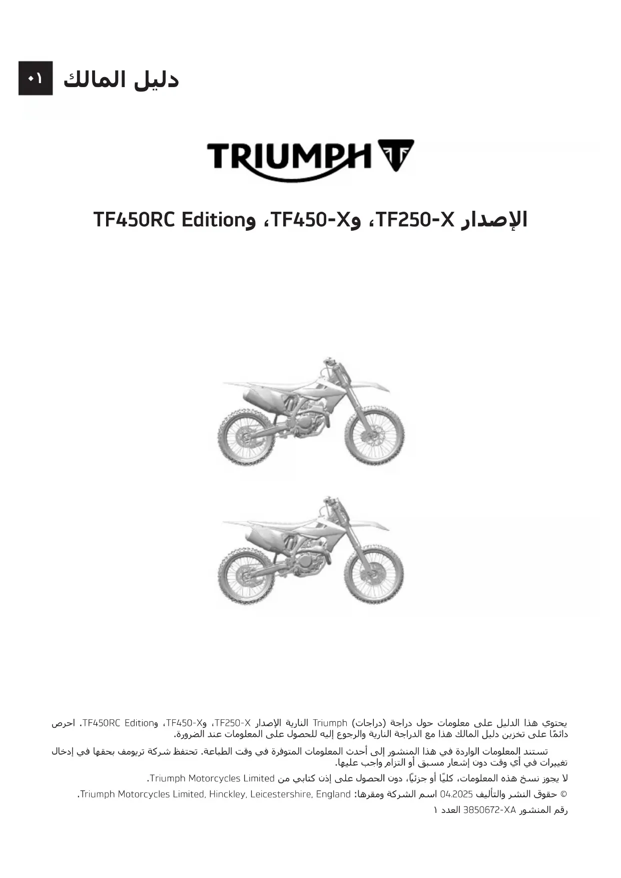 TF450X (2026) - Moto TRIUMPH - Notice d'utilisation et mode d'emploi gratuit