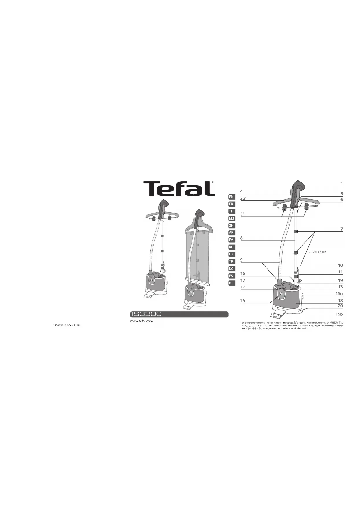 - Selon modèle L’accessoire Press & Steam est tordu. L’accessoire Press & Steam n’a pas été correctement fixé. Installez à nouveau l’accessoire Press & Steam à l’intérieur du cintre intégré. Assurez-vous qu’il est bien accroché, en suivant les instructions. L’accessoire Press & Steam n’a pas été correctement roulé. Assurez-vous que l’accessoire Press & Steam est toujours sec puis enroulez-le avec précaution pour le ranger. Ne le pliez pas pour le ranger. Le tuyau génère un bruit de gargouillement. Vous utilisez la tête vapeur dans une position proche du sol et de la condensation se produit dans le tuyau. Soulevez le tuyau fréquemment pendant l’utilisation et réglez le mât à sa hauteur maximale, afin d’éviter la formation de la condensation. L’eau déborde du réservoir d’eau. Vous utilisez la tête dans une position proche du sol et de la condensation se produit dans le tuyau. Soulevez le tuyau fréquemment pendant l’utilisation et réglez le mât à sa hauteur maximale, afin d’éviter la formation de la condensation. L’accessoire Press & Steam se détache pendant l’utilisation. L’accessoire Press & Steam n’a pas été accroché correctement sur le crochet. Assurez-vous que la poignée de l’accessoire Press & Steam est fermement accrochée dans le crochet. Elle ne doit pas se déplacer horizontalement ou verticalement. Assurez- vous que les 4 segments du mât sont entièrement déployés et que les 3 clips sont solidement enclenchés. Si la cause du problème ne peut être établie, veuillez demander l’assistance d’un centre de service agréé www.tefal.com23 THTH คู่มือการใช้งานเพื่อความปลอดภัย กรุณาอ่านคู่มือการใช้งานต่อไปนี้อย่างละเอียดก่อน การใช้งานครั้งแรก และเก็บเอาไว้ในที่ปลอดภัย