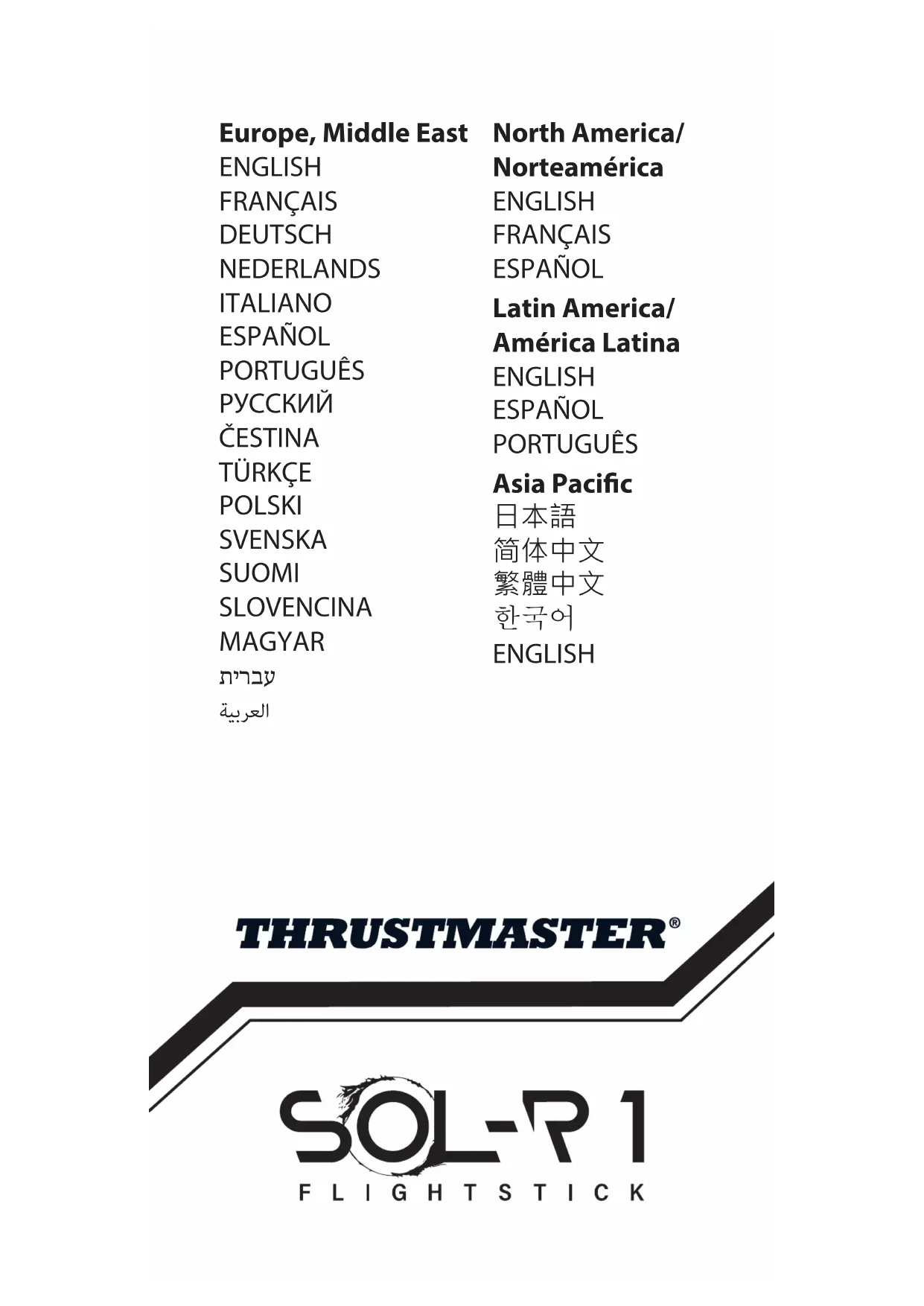 Vivez une expérience stellaire unique avec le joystick Sol-R 1 Flightstick qui vous accompagnera au cœur de vos combats et explorations spatiales. Ce manuel va vous aider à installer et utiliser dans les meilleures conditions votre joystick Sol-R 1 Flightstick. Avant de décoller, lisez attentivement les instructions et les avertissements, ils vous aideront à tirer le maximum de plaisir de votre produit.5